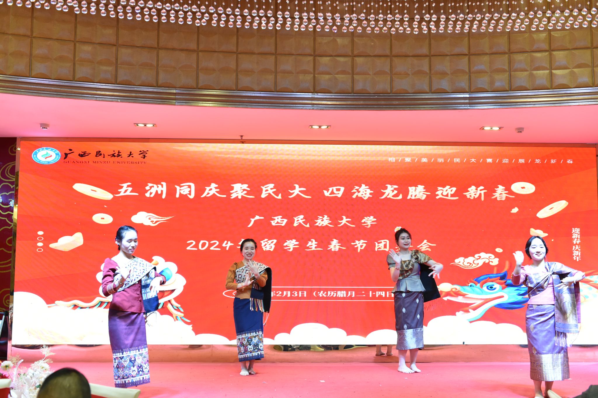 【大学生通讯社报道】2月3日,澳门网投官方网站举办2024年留学生春节团拜会。澳门网投官方网站党委常委、副校长高兴宇以及有关职能部门、学院负责人到场看望与慰问在校留学生,并送上新春祝福和礼物。