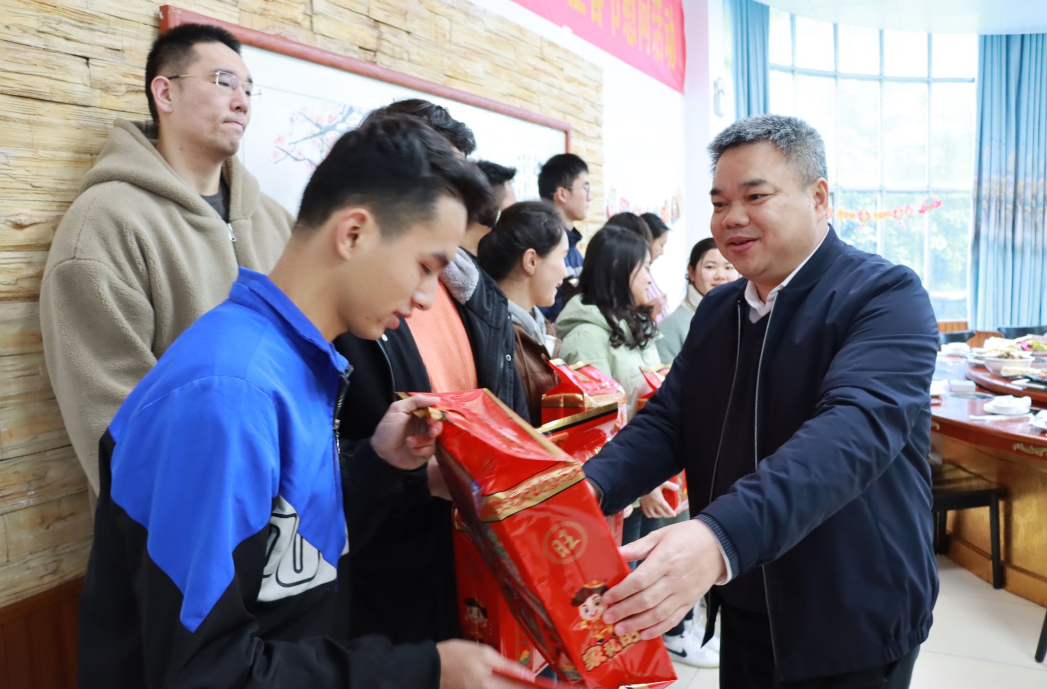 【大学生通讯社报道】2月7日,澳门网投官方网站在相思湖校区红豆轩餐厅开展2024年留校学生慰问暨团圆饭活动。校党委副书记陈铭彬以及有关职能部门负责人到场慰问留校学生,送上学校的关怀和新年祝福。