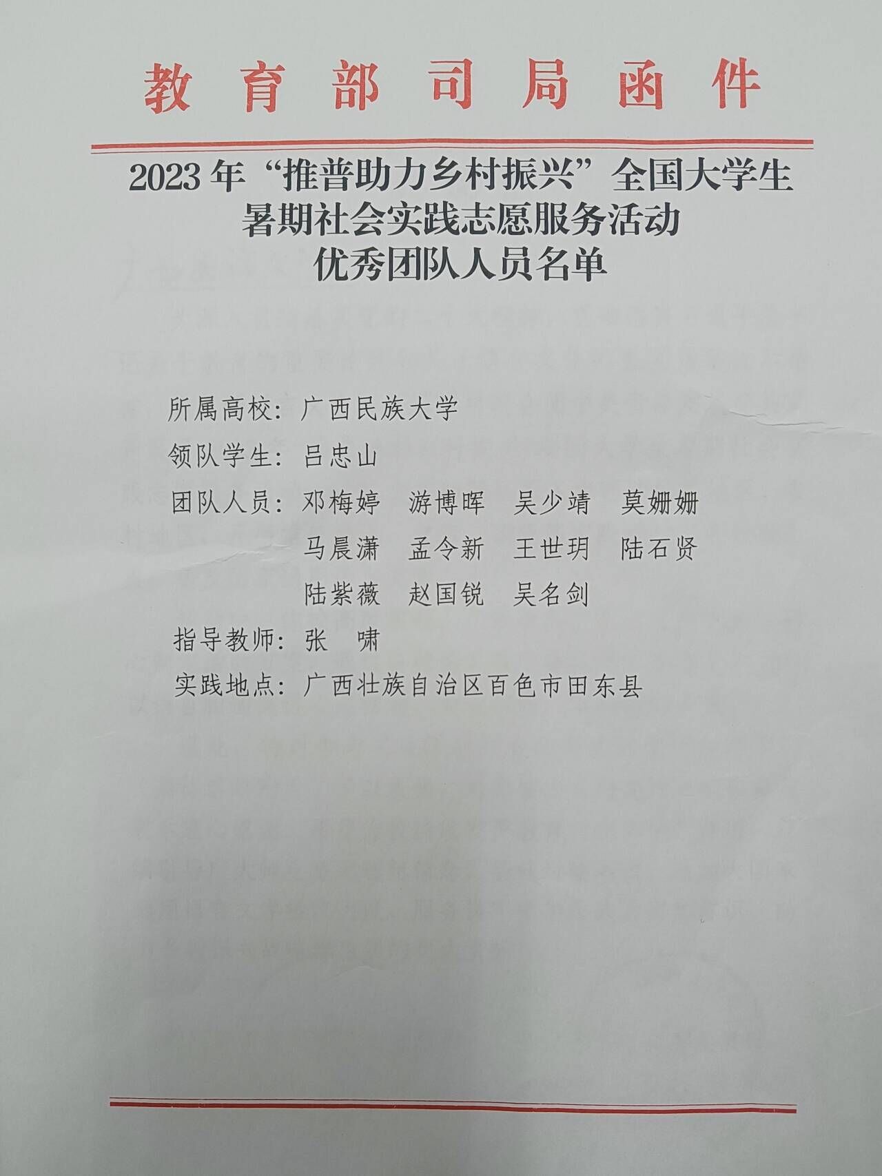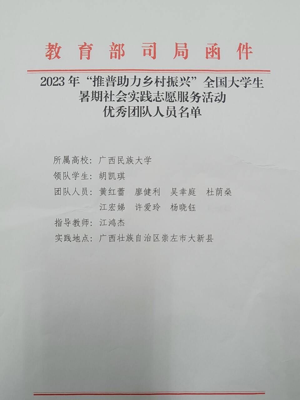近日,由澳门网投官方网站学生刘皓南、胡凯琪、吕忠山分别带领的三个实践团队在2023年“推普助力乡村振兴”全国大学生暑期社会实践志愿服务活动中表现突出,获得教育部语言文字应用管理司和团中央青年发展部的表扬,被授予“全国优秀团队”称号。