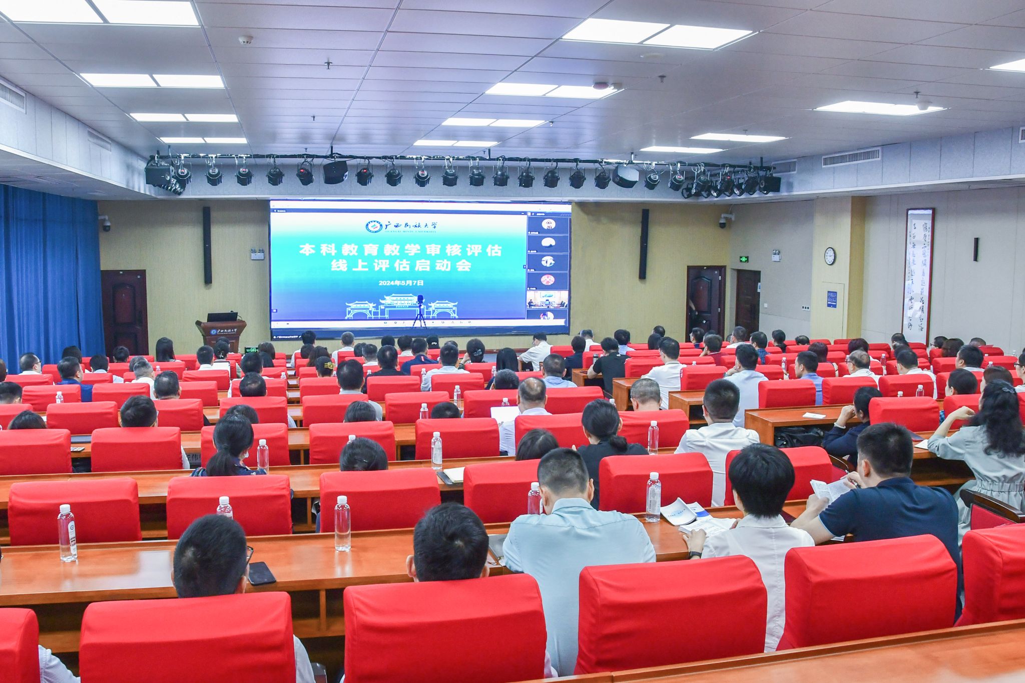 专家组全体成员,我校在家校领导,自治区教育厅、广西本科教育发展研究中心有关部门负责人,我校全体中层领导干部、本科教学督导委员会委员,专业负责人,教研室主任,教务处、教学质量监测与评估中心、评估办全体人员以及师生代表参加会议。相思湖校区、思源湖校区、武鸣校区同时设分会场。(初审:谢蓓 编辑:林欢 实习编辑:谭凤 校对:樊欣旺 复审:潘之铭 终审:王文娟)