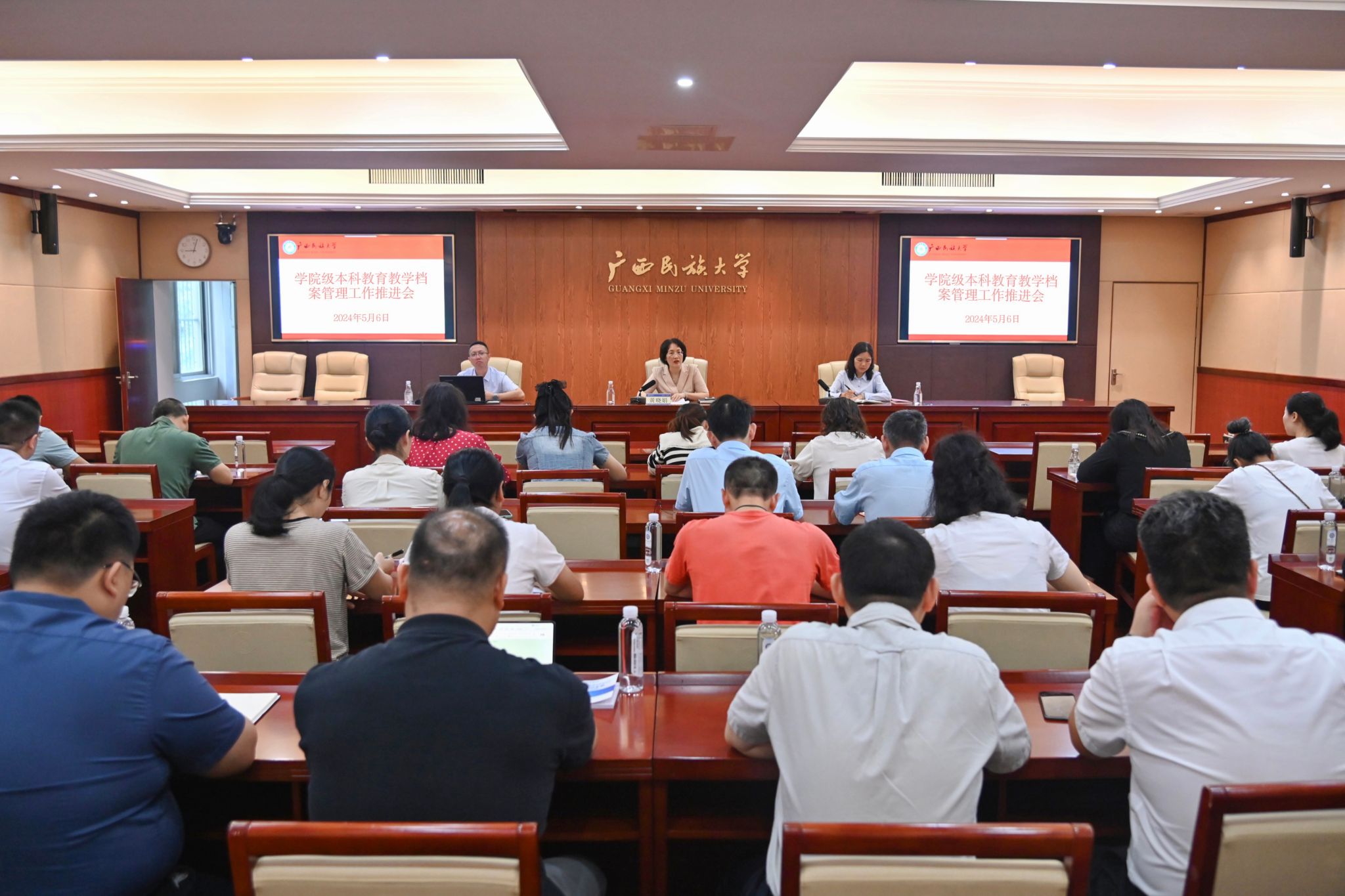 【学校召开学院级本科教育教学档案管理工作推进会】5月6日,副校长黄晓娟在院级本科教育教学档案管理工作推进会上强调,要高度重视本科教育教学档案管理工作,落实主体责任,坚持问题导向,做到评建结合,形成长效机制。(初审/李彩丽 复审/荣子卿 终审/王文娟)