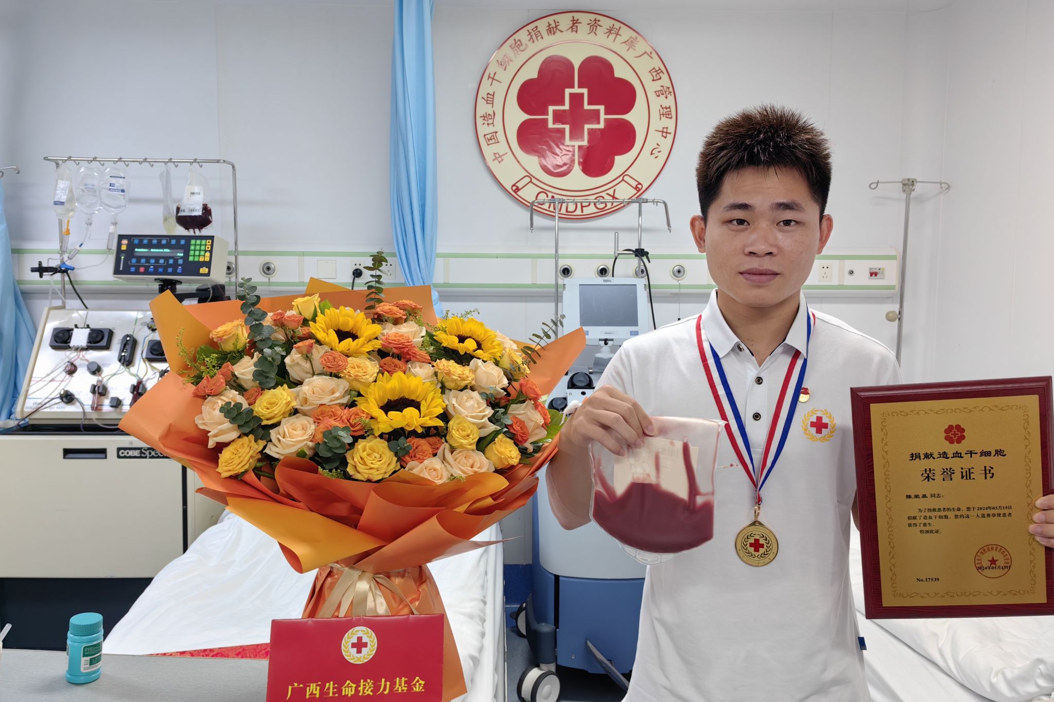 5月15日,澳门网投官方网站体育与健康科学学院2020级社会体育指导与管理专业陈荣基在广西医科大学第一附属医院完成造血干细胞无偿捐献采集,成为全国第17539例、广西壮族自治区第619例、南宁市第202例造血干细胞捐献者,为他人点亮新的生命希望。