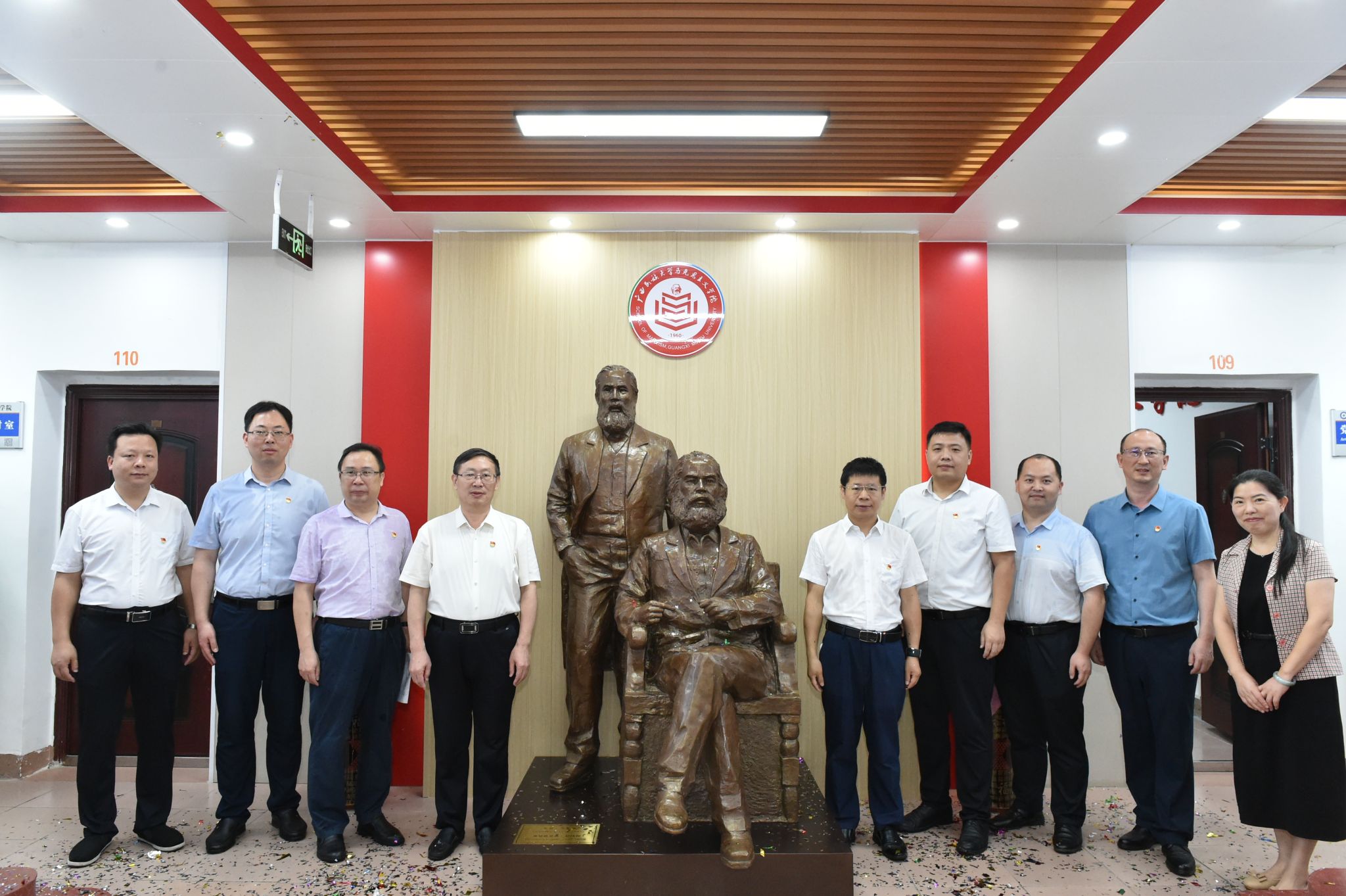 邓国彬致辞表示,设置马克思恩格斯雕像,是为了表达对两位伟人的永久纪念,更是为了学习和弘扬他们的先进思想、伟大精神、崇高品质和革命情操。马克思主义学院要坚持以马克思主义为指导,贯彻落实习近平总书记对学校思政课建设作出的重要指示,坚持思政课建设与党的创新理论武装同步推进,不断开创新时代思政教育新局面,努力培养更多让党放心、爱国奉献、担当民族复兴重任的时代新人。