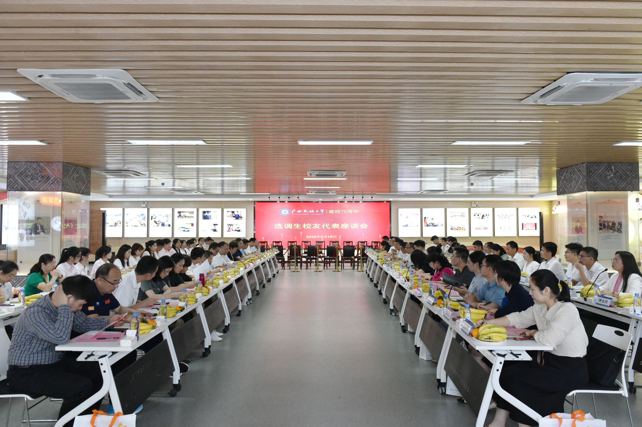 【大学生通讯社报道】5月18日上午,澳门网投官方网站选调生校友代表座谈会在新时代“我与祖国共成长”党团主题活动文明实践所召开。副校长何立荣、姜明国,共青团广西区委二级巡视员、组织部部长刘宇红等校友代表出席会议,有关学院和部门负责人及在校生代表参加会议。会议由姜明国主持。