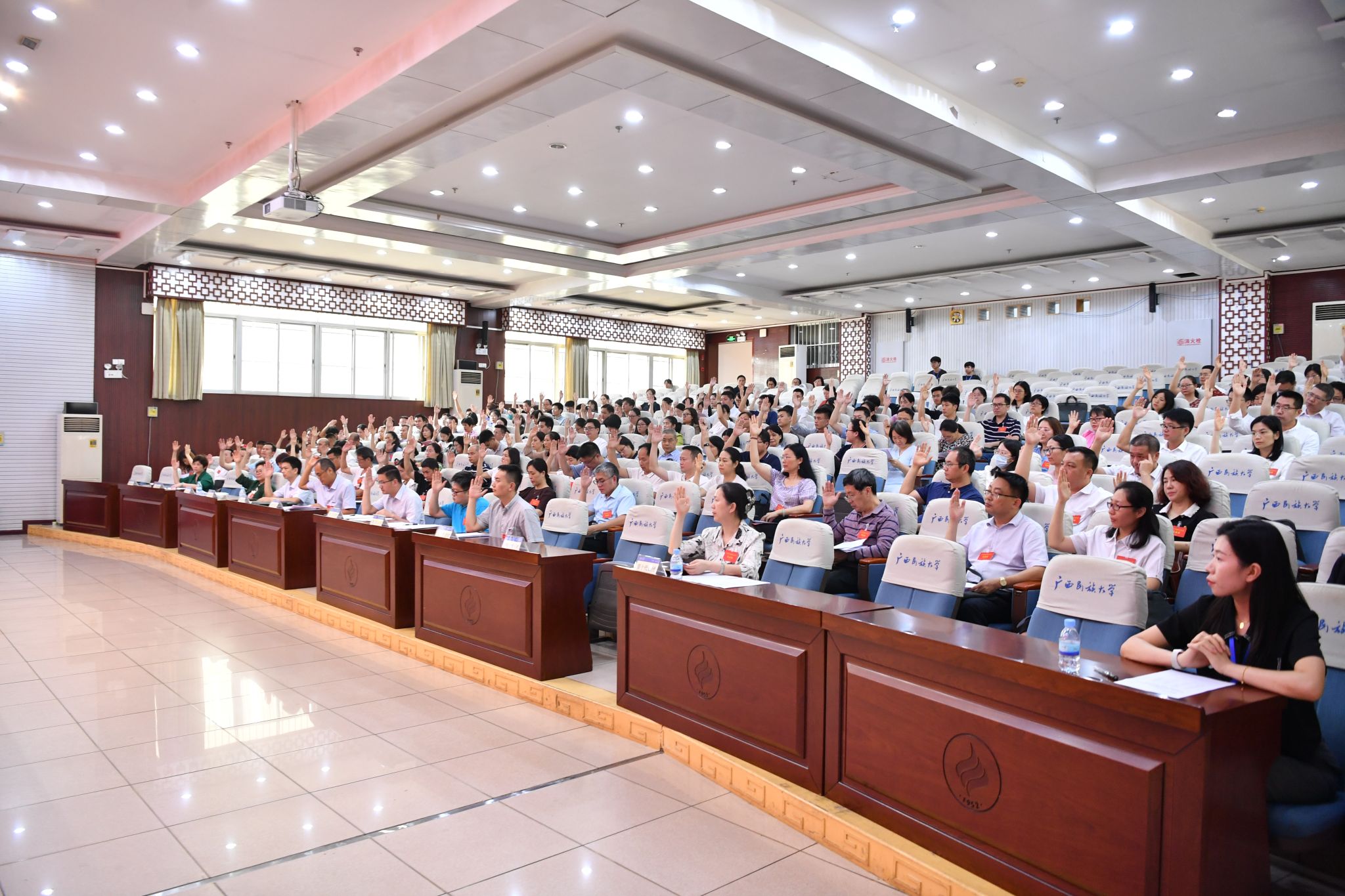 5月24日—25日,澳门网投官方网站第九届教职工代表大会第一次会议在相思湖校区召开。学校党委书记卞成林,校长韦仕珍,校领导陈铭彬、韦雪芳、邓国彬、蔡高根、黄晓娟、吕俊彪、何立荣、姜明国、高兴宇及第九届教职工代表参加大会。