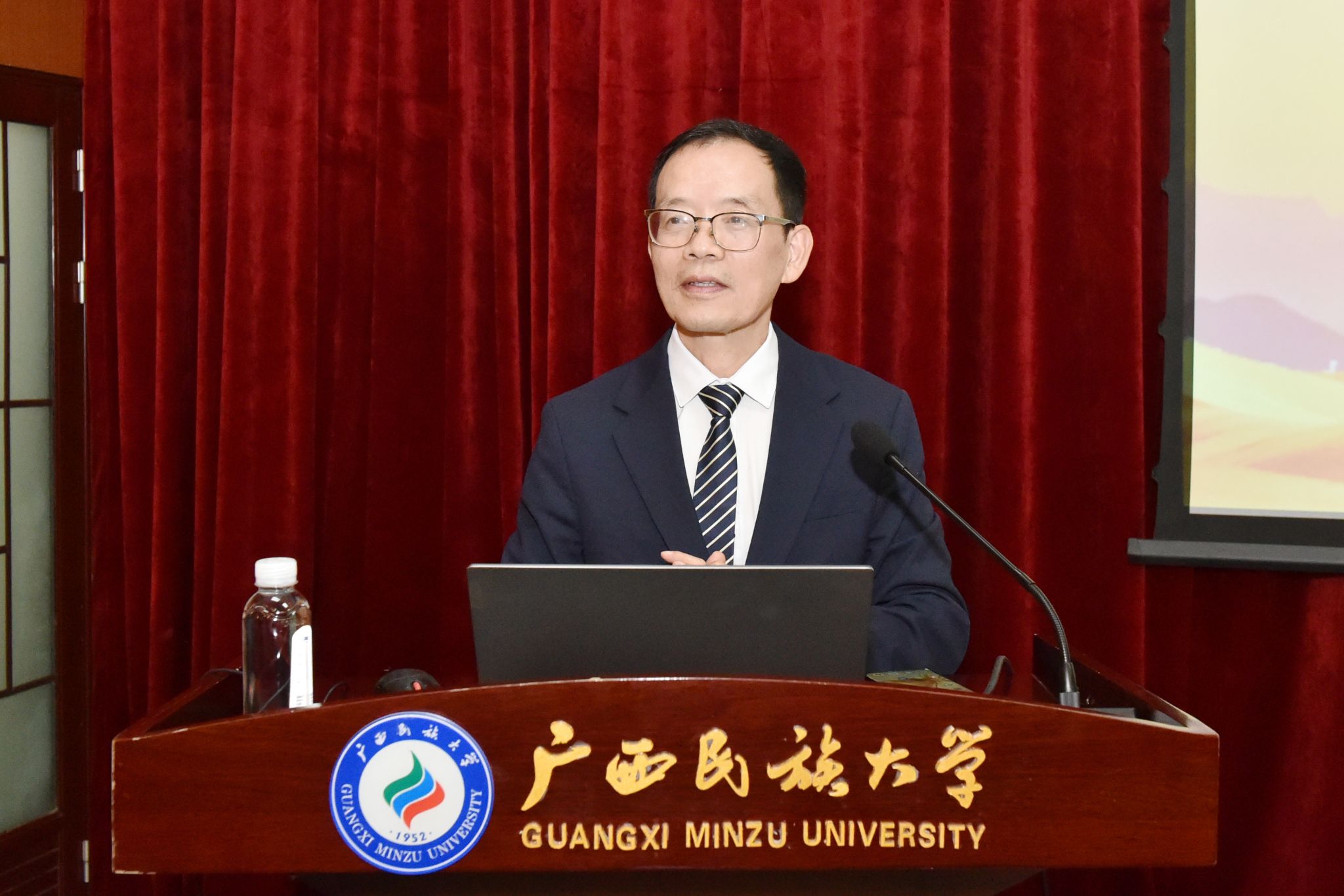 5月26日晚,“中国区域国别学理论知识体系创新发展”学术报告会在思源湖校区至善楼报告厅举行,校长韦仕珍出席报告会并致辞,报告会由浙江师范大学非洲研究院院长、国务院学位办区域国别学学科评议组秘书长、教育部长江学者特聘教授刘鸿武主讲。