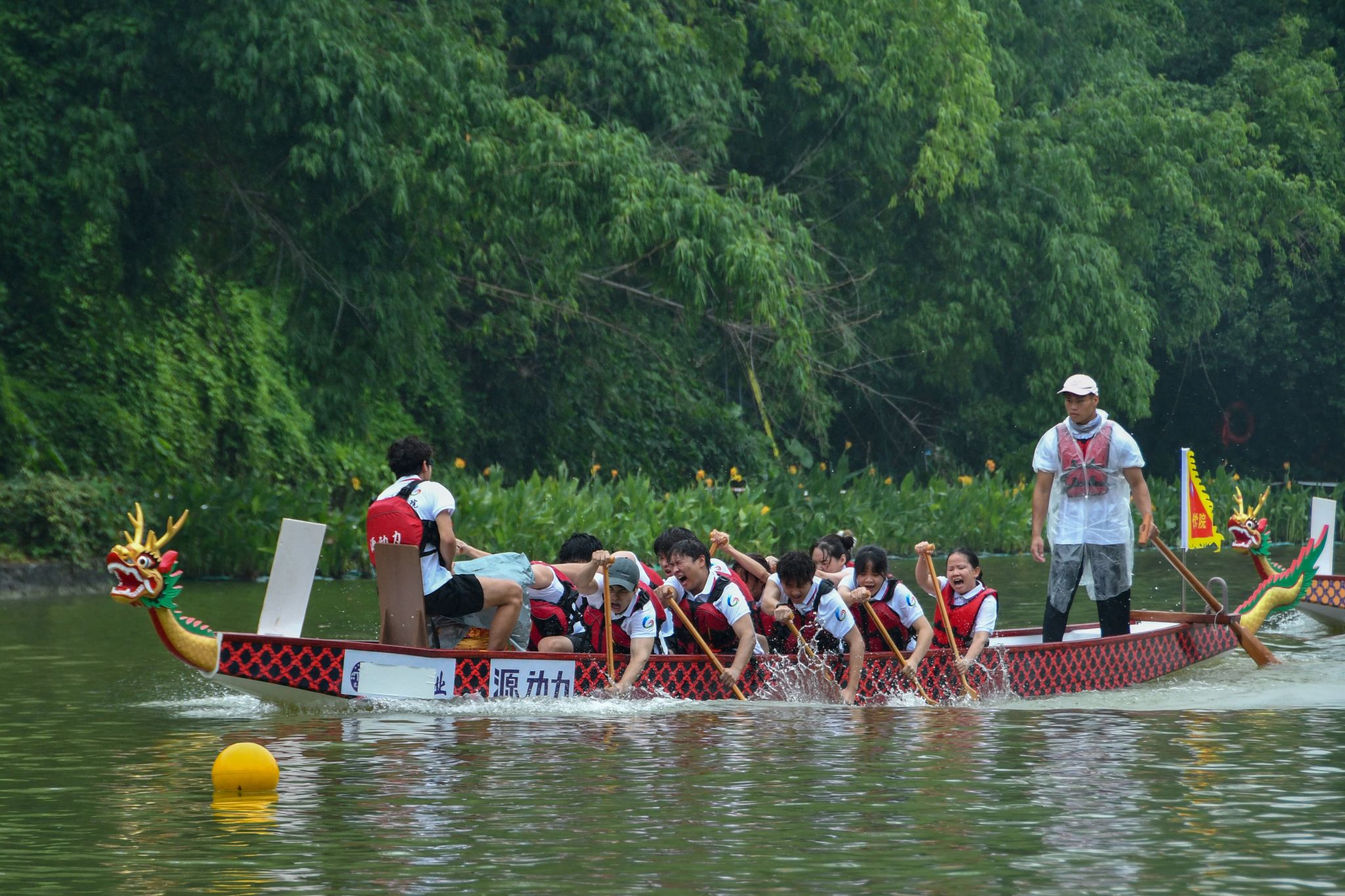 本次校园龙舟赛比赛项目为200米直道赛水上龙舟赛,共有32支学生队伍、 22支教职工队伍参赛。经过激烈比拼,国有资产管理处代表队获教职工男女混合组冠军,国际教育学院代表队获学生甲组男女混合组冠军,体育与健康科学学院2022级二队获学生乙组男女混合组冠军。