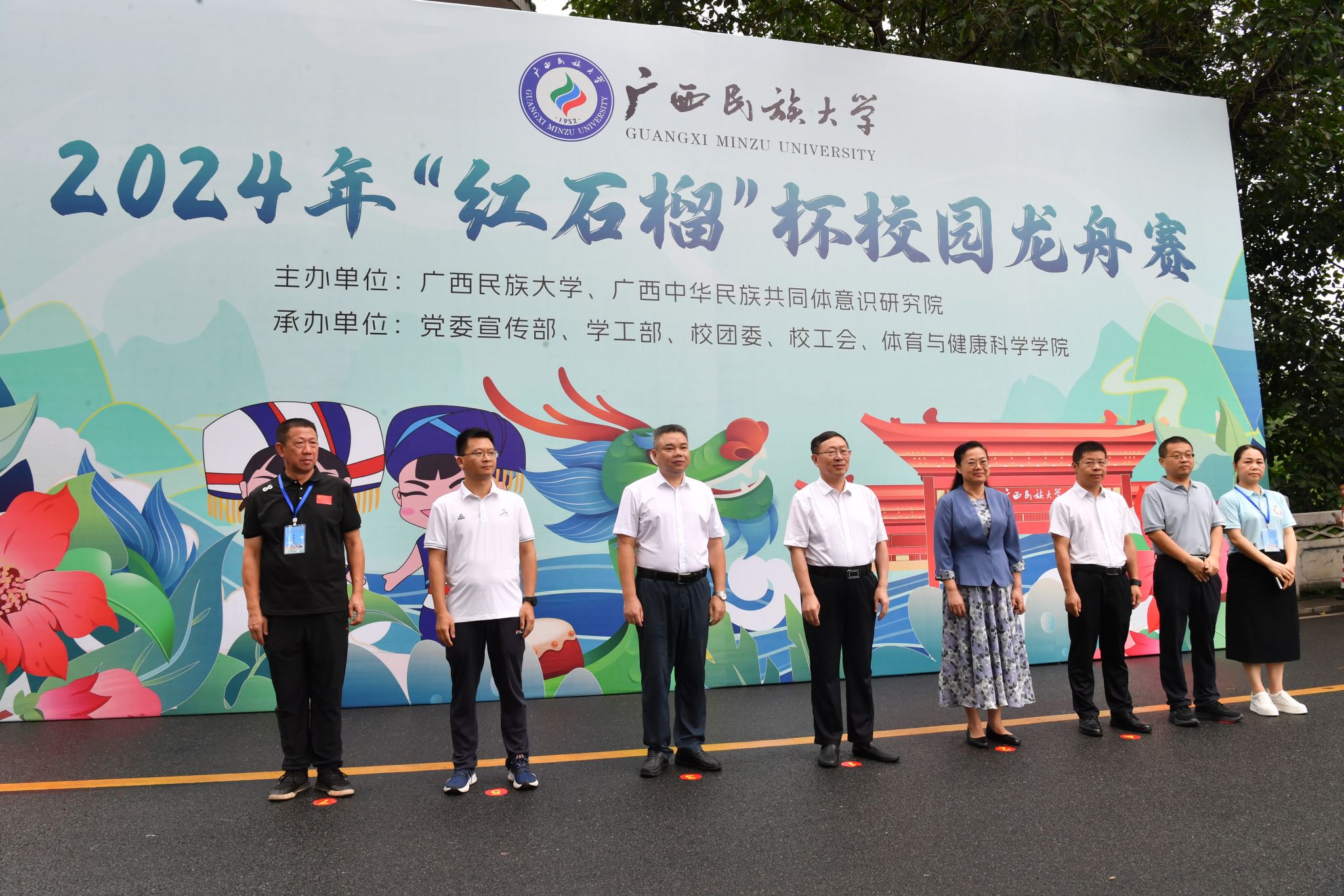 【大学生通讯社报道】端午佳节赛龙舟,百舸争流展豪情。6月8日上午,澳门网投官方网站2024年“红石榴”杯校园龙舟赛在相思湖举行。学校党委书记卞成林宣布龙舟赛开幕,校长韦仕珍,校领导陈铭彬、邓国彬和有关部门负责人及师生代表参加活动。龙舟赛作为学校传统文化品牌活动之一,至今历时四届。