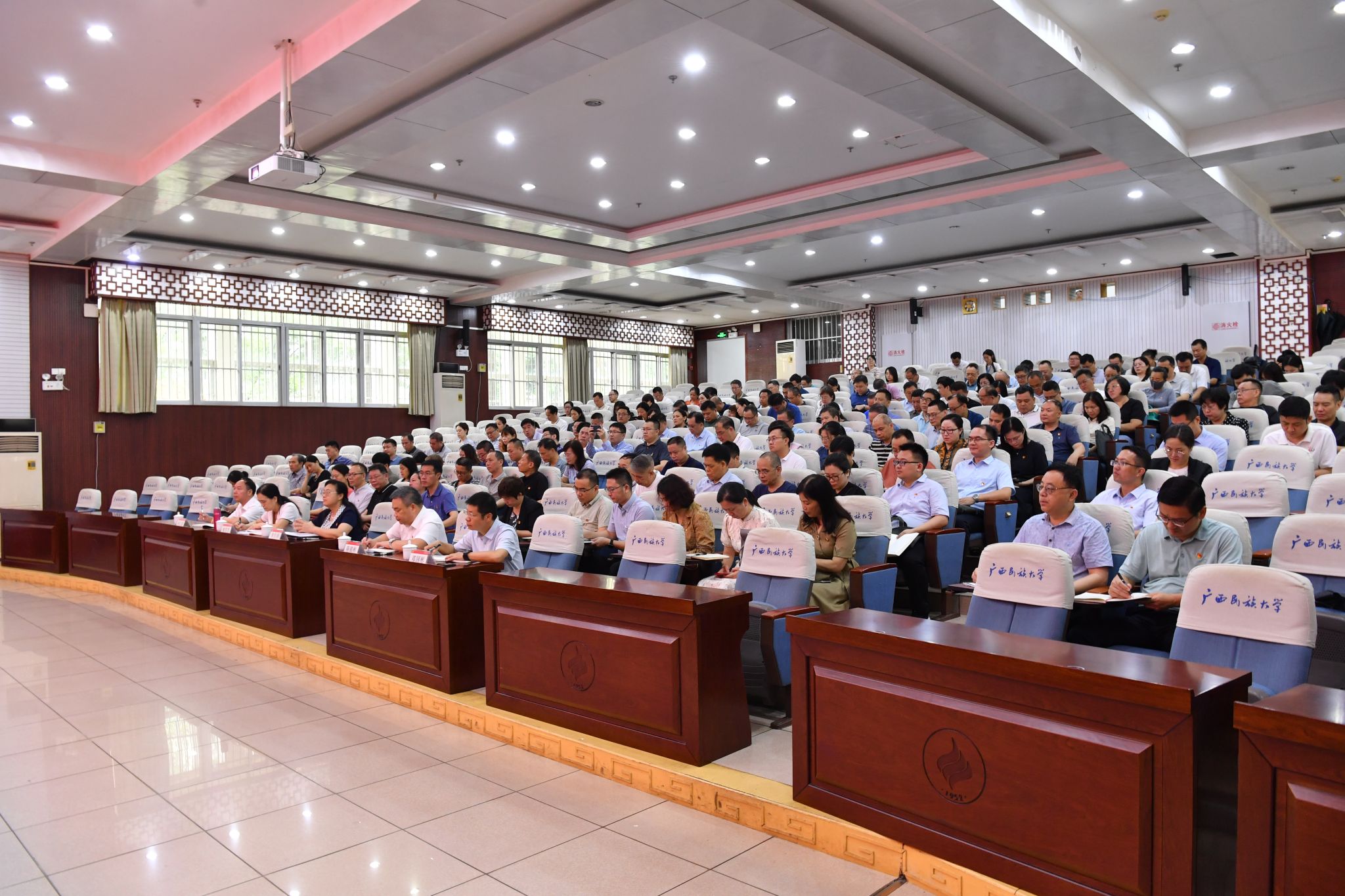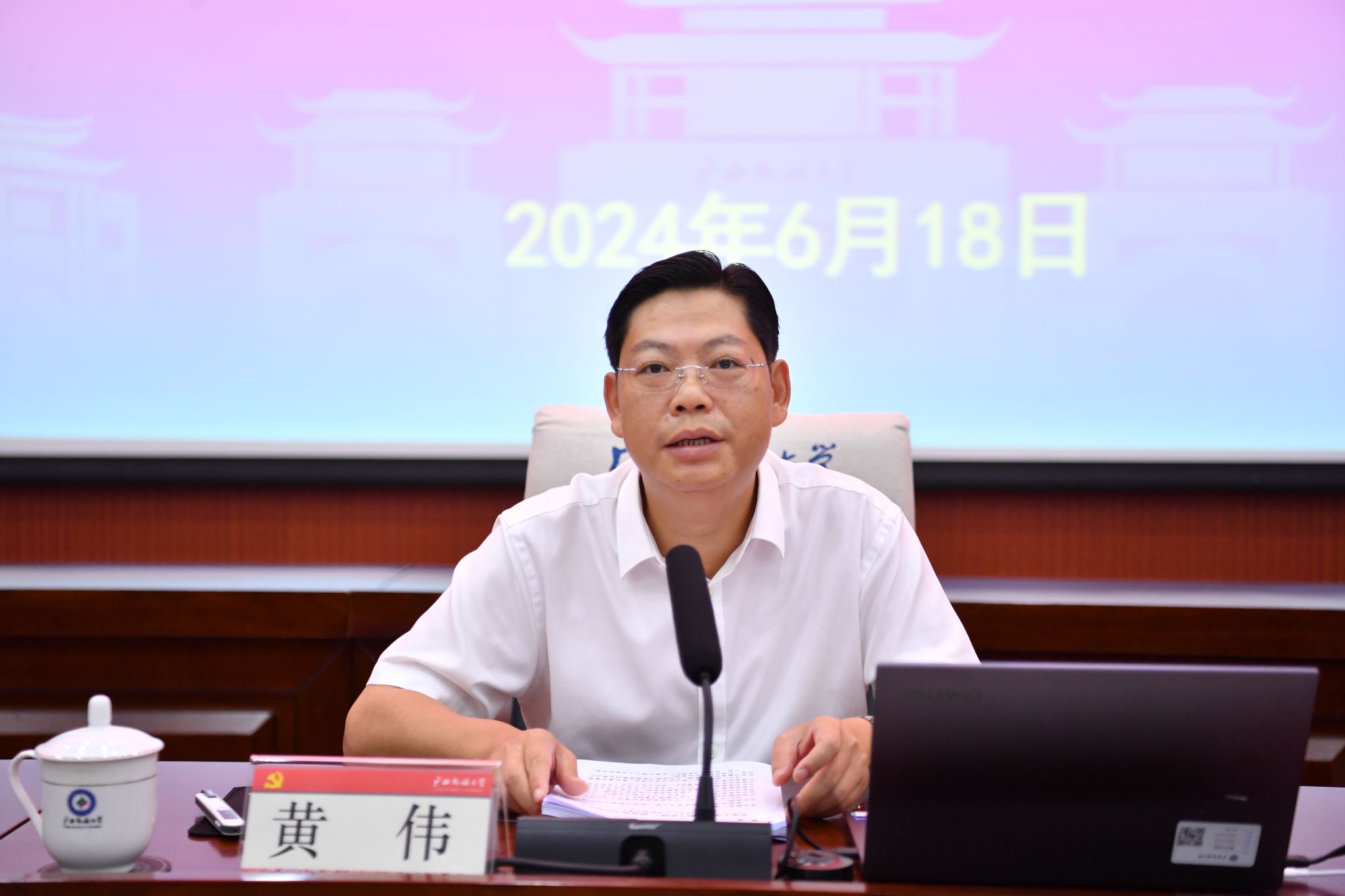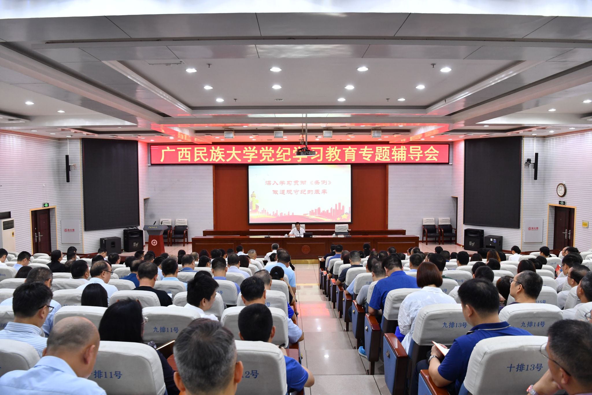 【大学生通讯社报道】6月18日,澳门网投官方网站在科技楼报告厅召开党纪学习教育专题辅导会暨警示教育会。自治区纪委监委研究法规室主任黄伟就新修订的《中国共产党纪律处分条例》(以下简称《条例》)作专题辅导,校党委副书记、校长韦仕珍主持会议。学校党委领导班子成员、党委委员、全体中层领导干部参加会议。