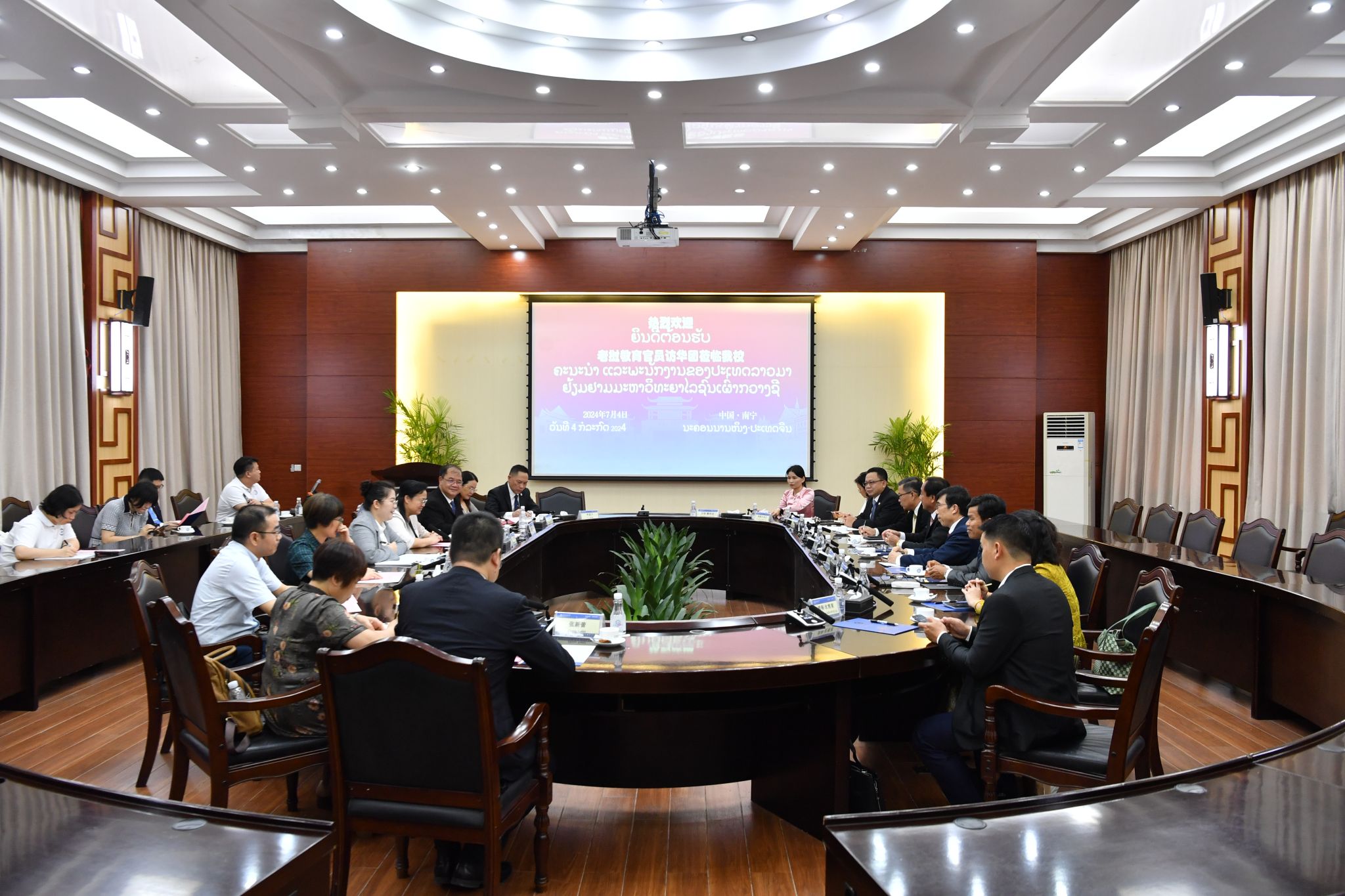 7月4日下午,澳门网投官方网站校长韦仕珍会见由老挝教育体育部副部长桑拉•潘卡翁、老挝国立大学校长德沙努腊•散杜昂德等组成的老挝教育官员访华团一行。座谈交流会在国际合作与交流处会议室举行。