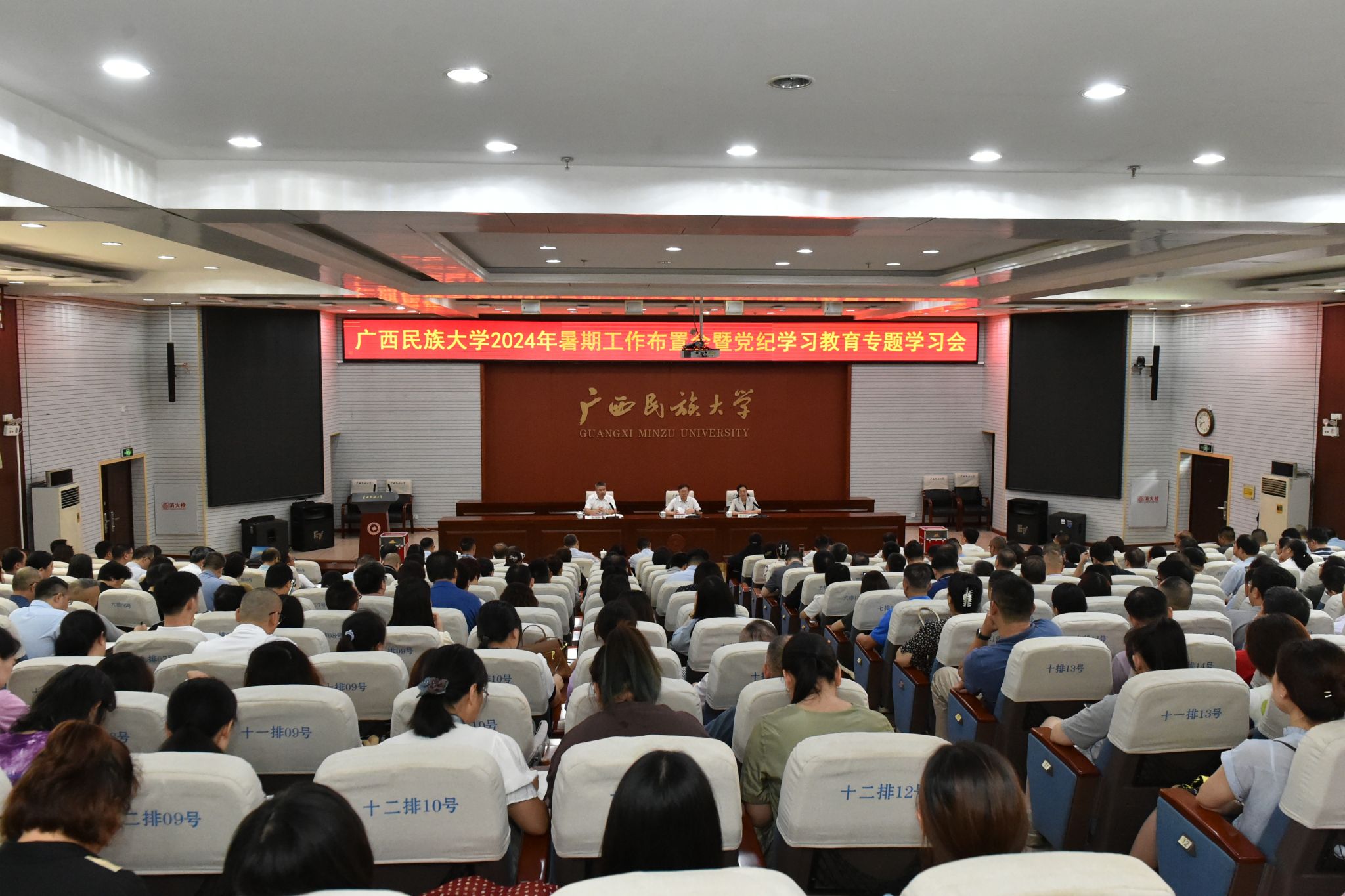 7月12日上午,澳门网投官方网站召开2024年暑期工作布置会暨党纪学习教育专题学习会。学校党委书记卞成林,党委副书记、校长韦仕珍出席会议并讲话。党委副书记陈铭彬主持会议。学校在家校领导及全体正科级以上干部参加会议。