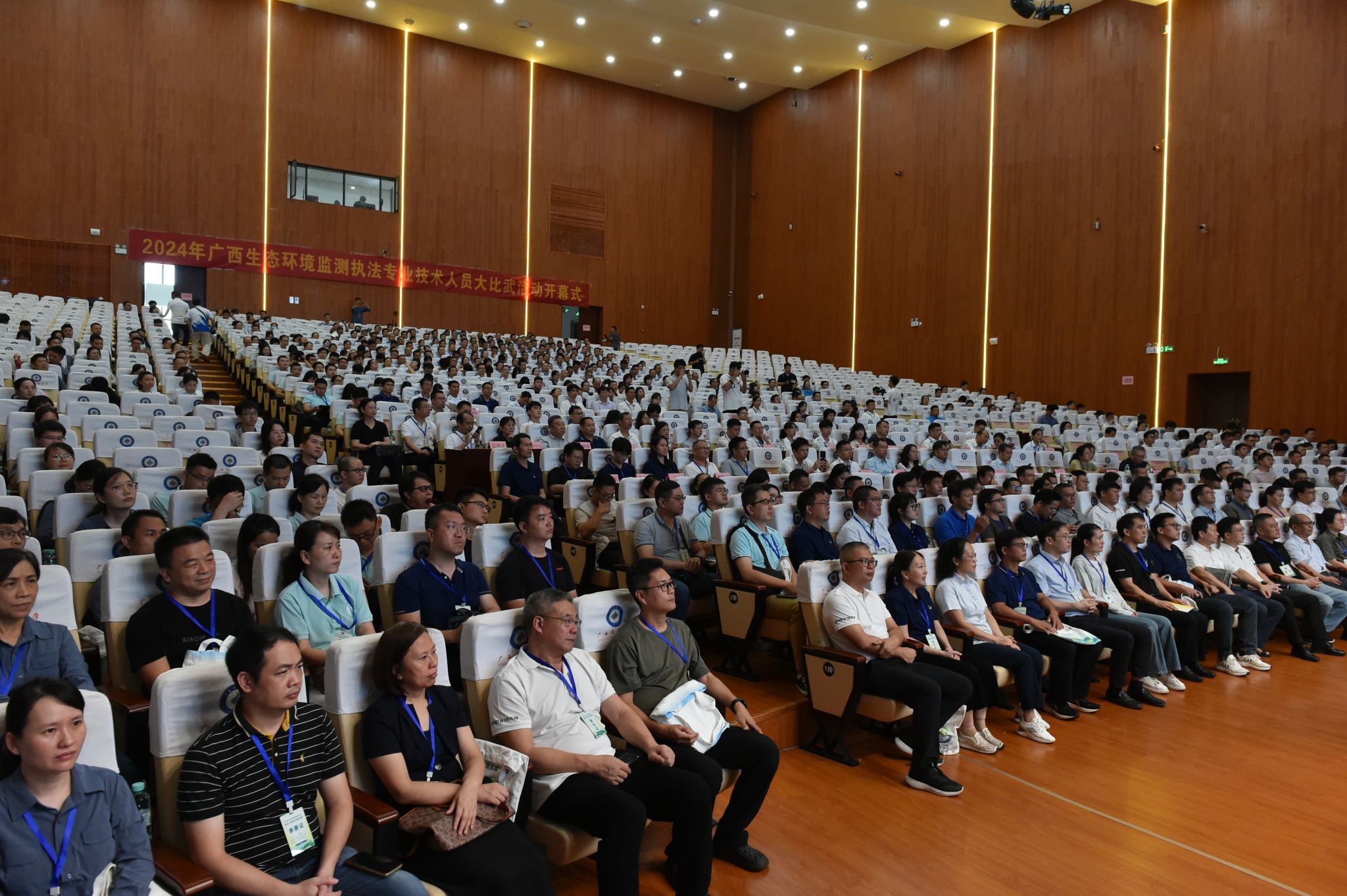 【大学生通讯社报道】7月19日至21日,2024年广西生态环境监测执法专业技术人员大比武活动在澳门网投官方网站举行。中国环境监测总站党委书记、站长张大伟,自治区生态环境厅党组书记、厅长陈亮,澳门网投官方网站党委副书记、校长韦仕珍出席活动。