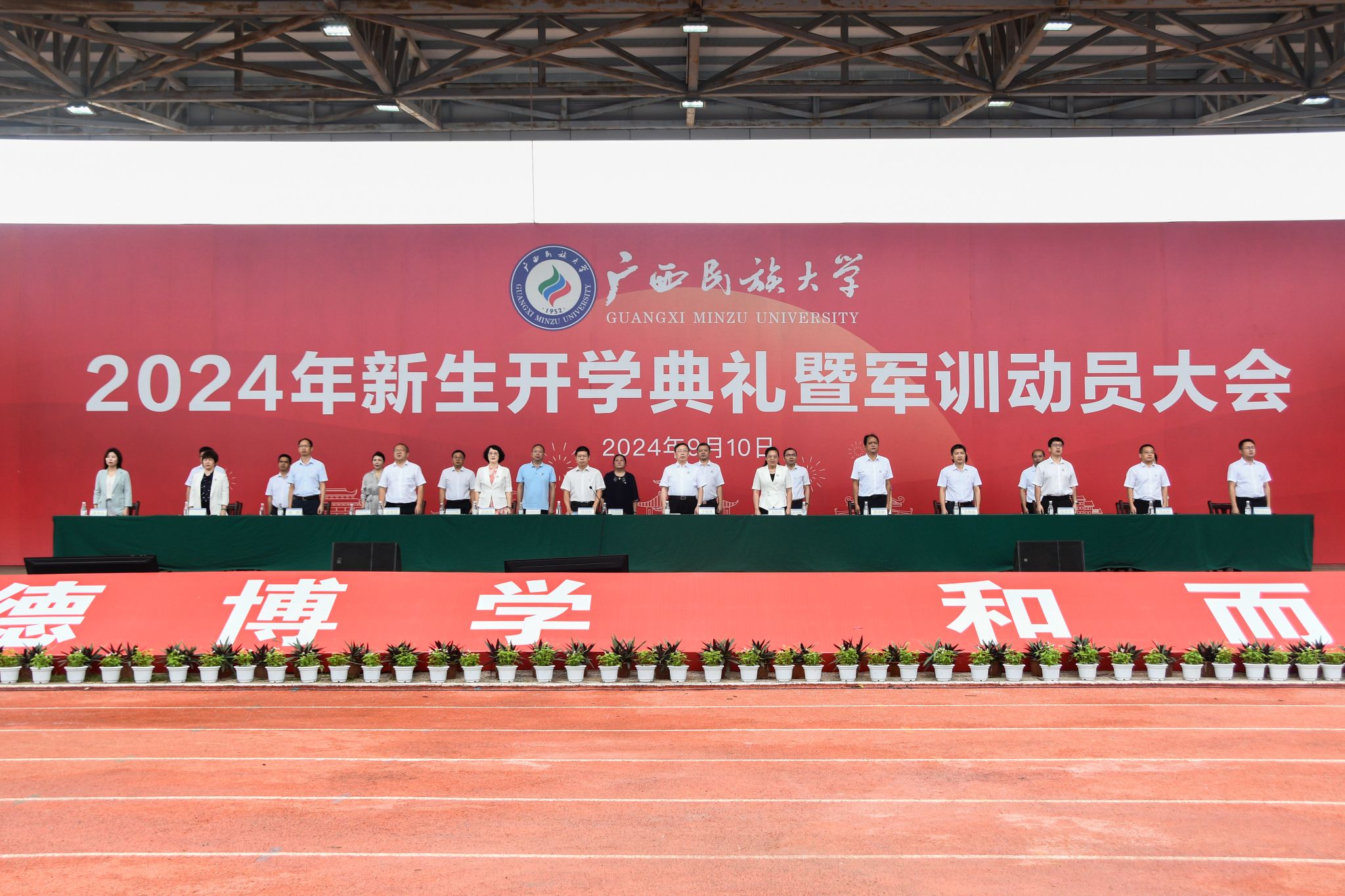 【大学生通讯社报道】9月10日上午,澳门网投官方网站2024年新生开学典礼暨军训动员大会在思源湖校区李宁田径场、相思湖校区田径场、武鸣校区体育馆同步举行。学校党委书记卞成林,校长韦仕珍,校领导陈铭彬、邓国彬、蔡高根、黄晓娟、吕俊彪、何立荣、姜明国、高兴宇,学校有关职能部门、各学院负责人,教师代表,2024级全体新生参加典礼。