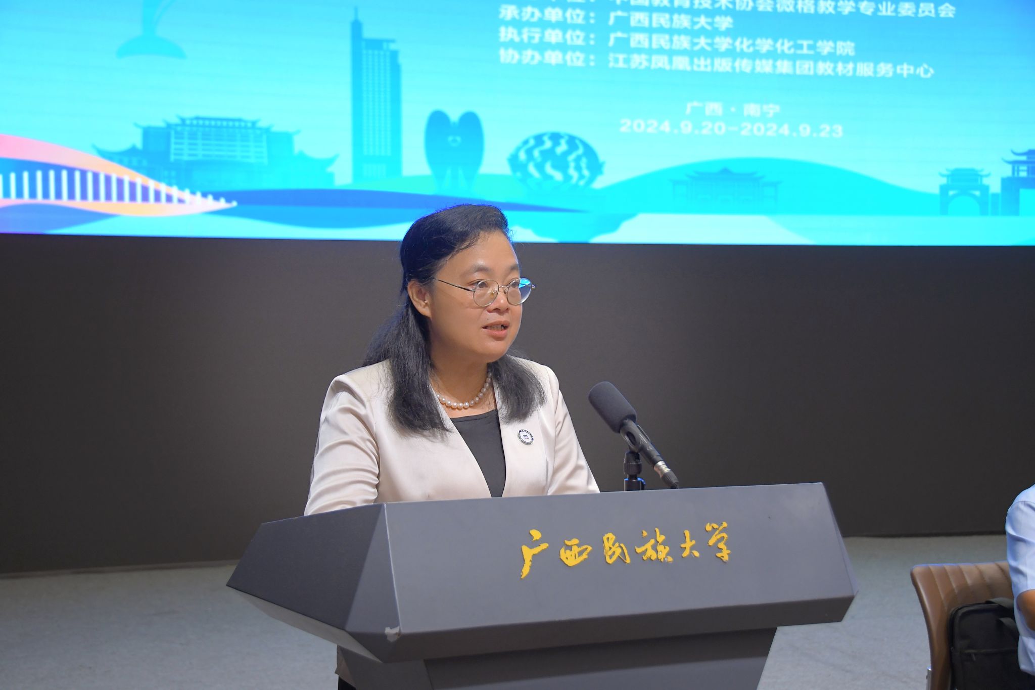 【大学生通讯社报道】9月21日, 2024年化学教育微格教学论坛暨第十三届高校化学教育师范生教学技能测试活动在澳门网投官方网站举行。学校党委副书记、校长韦仕珍教授出席开幕式并致辞。中国教育技术协会微格教学专业委员会理事长孟宪凯教授,副理事长兼秘书长杨华教授出席活动。