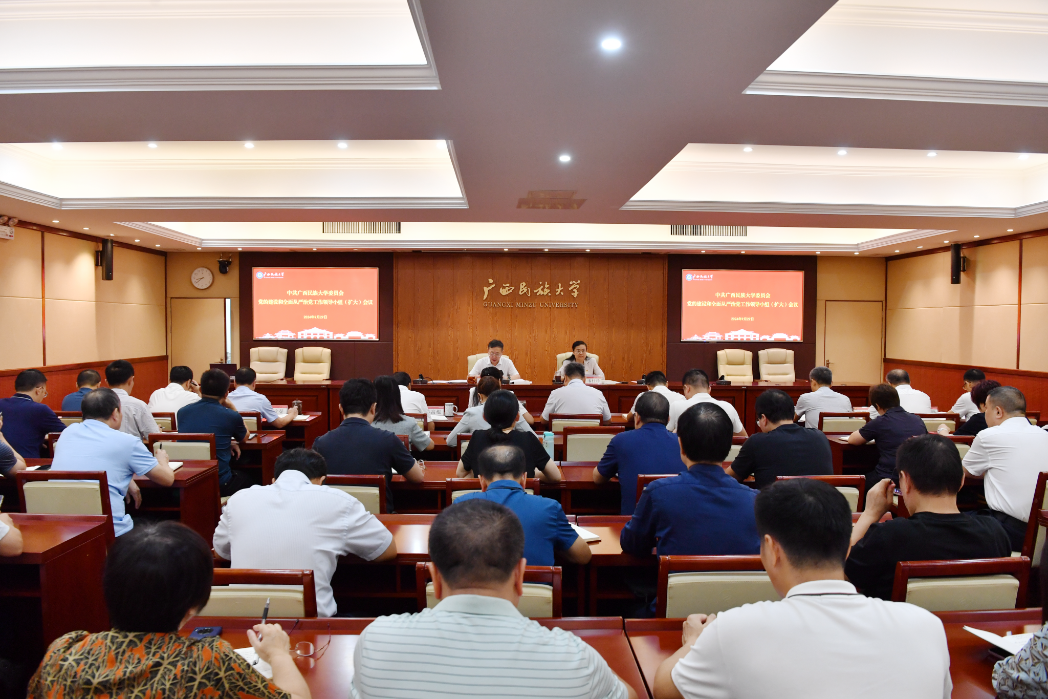 9月29日上午,澳门网投官方网站党委召开党的建设和全面从严治党工作领导小组(扩大)会议,学习贯彻习近平总书记关于全面加强党的纪律建设的重要论述和关于党纪学习教育的重要指示精神,学习中央党的建设工作领导小组会议和自治区党委党的建设工作领导小组会议精神,总结学校党纪学习教育工作,部署推进党纪学习教育常态化长效化工作。学校党委书记卞成林,党委副书记、校长韦仕珍等学校领导,党的建设和全面从严治党工作领导小组全体成员,各院级党组织书记,各单位、各部门主要负责人,党纪学习教育工作专班全体成员参加会议。会议由韦仕珍主持。