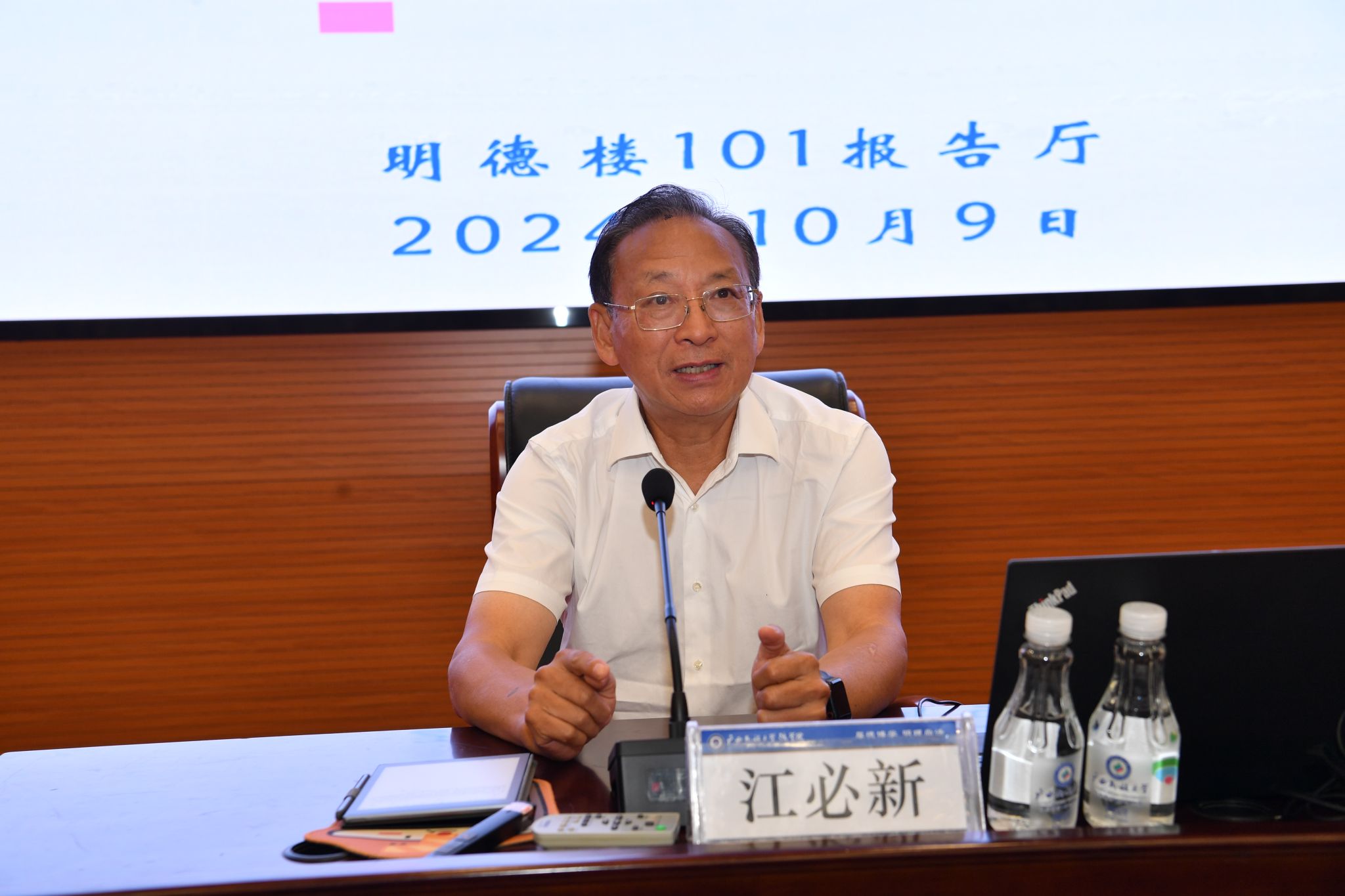 【大学生通讯社报道】10月9日晚,“法律人职业素养及养成”主题讲座在澳门网投官方网站思源湖校区明德楼101报告厅举行。本次讲座由第十三届全国人民代表大会宪法和法律委员会副主任委员、中国法学会副会长、最高人民法院党组原副书记、原副院长江必新教授主讲。学校党委书记卞成林会前会见了江必新教授。学校党委副书记陈铭彬主持讲座。