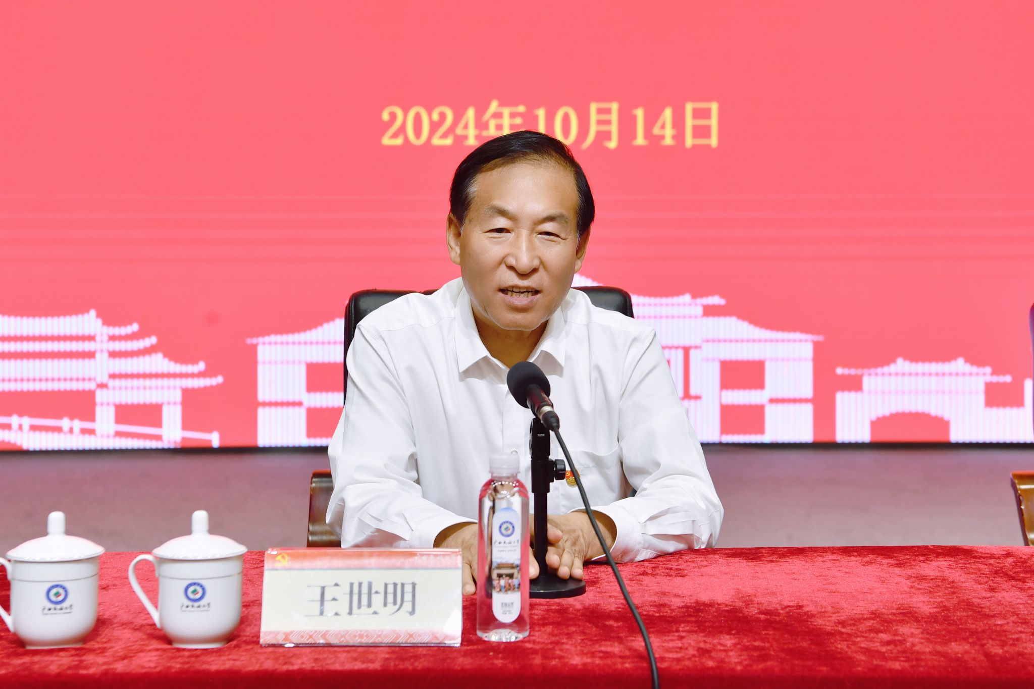 王世明结合传统与现代变迁、历史与现实状况、国际与国内形势,从“文化自信的极端重要”“文化自信的重要支撑”等角度对“文化自信”的深刻内涵进行解读。他强调,文化自信是一个民族、一个国家发展进步的根本力量,是我们在世界文化激荡中站稳脚跟、保持自我的根基。王世明勉励同学们要珍惜大学时光、努力奋斗、锤炼品质,为强国建设、民族复兴添砖加瓦。