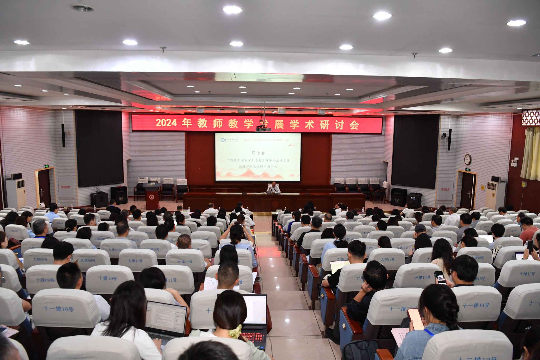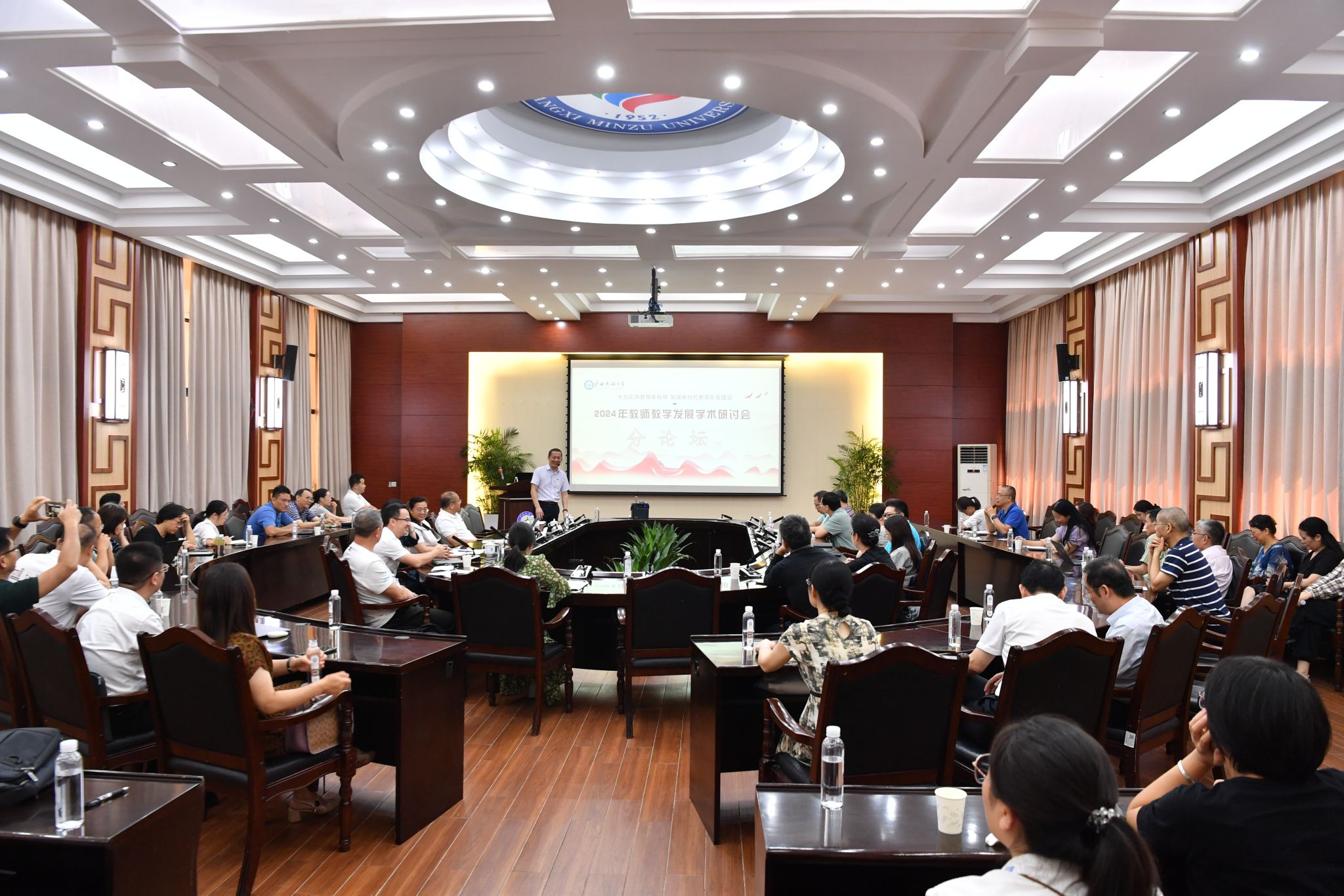【大学生通讯社报道】10月19日至20日,由澳门网投官方网站、中南民族大学联合主办的 “大力弘扬教育家精神,加强新时代教师队伍建设” 2024年教师教学发展学术研讨会在澳门网投官方网站召开。中国教育学会学术委员会常务副主任委员、教育部政策法规司原司长邓传淮,澳门网投官方网站党委书记卞成林,党委副书记、校长韦仕珍分别出席开幕式和分论坛。澳门网投官方网站党委常委、副校长姜明国,中南民族大学党委常委、副校长李红燕主持研讨会。来自区内外24所高校的300余名教师参会。