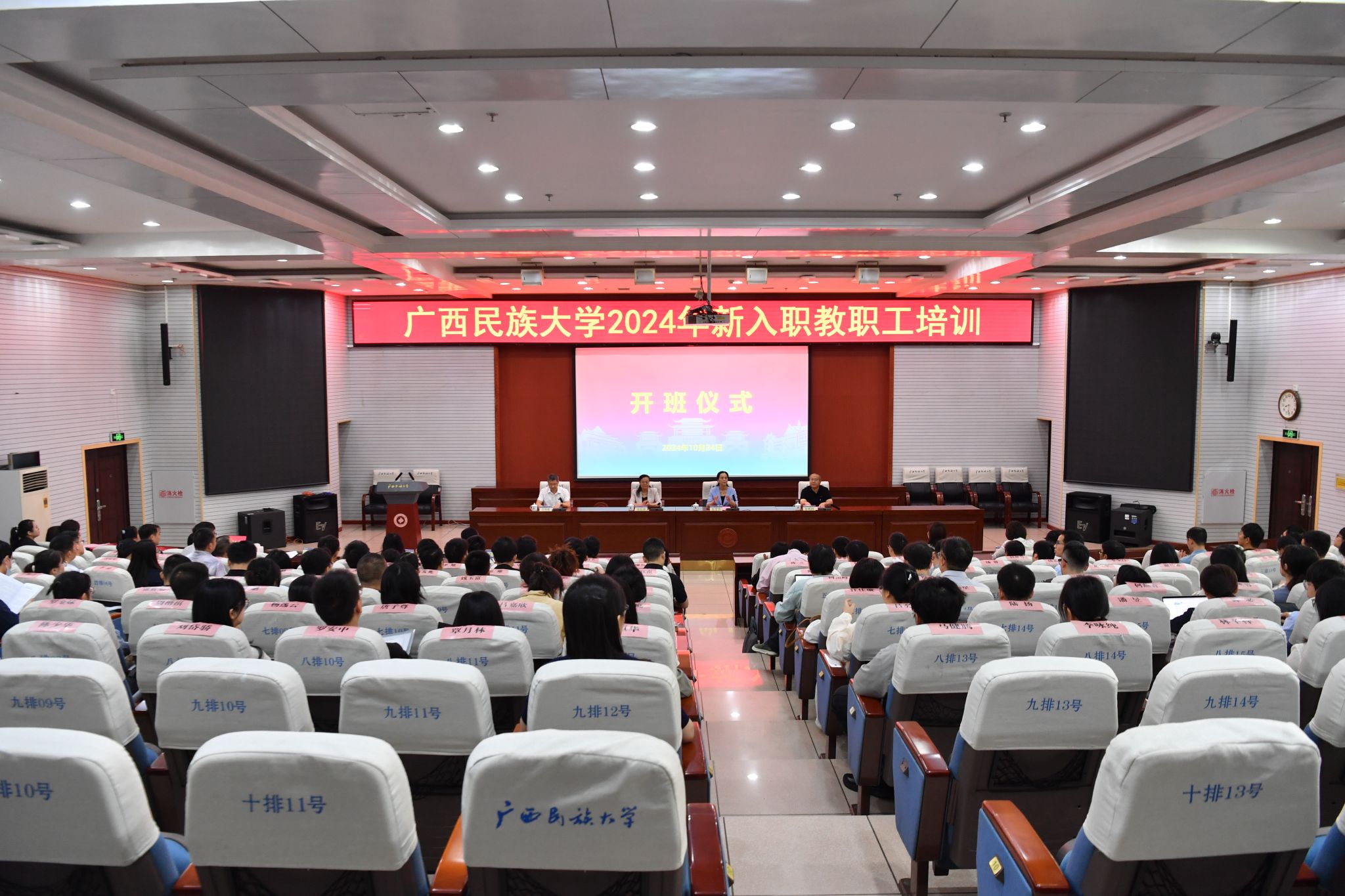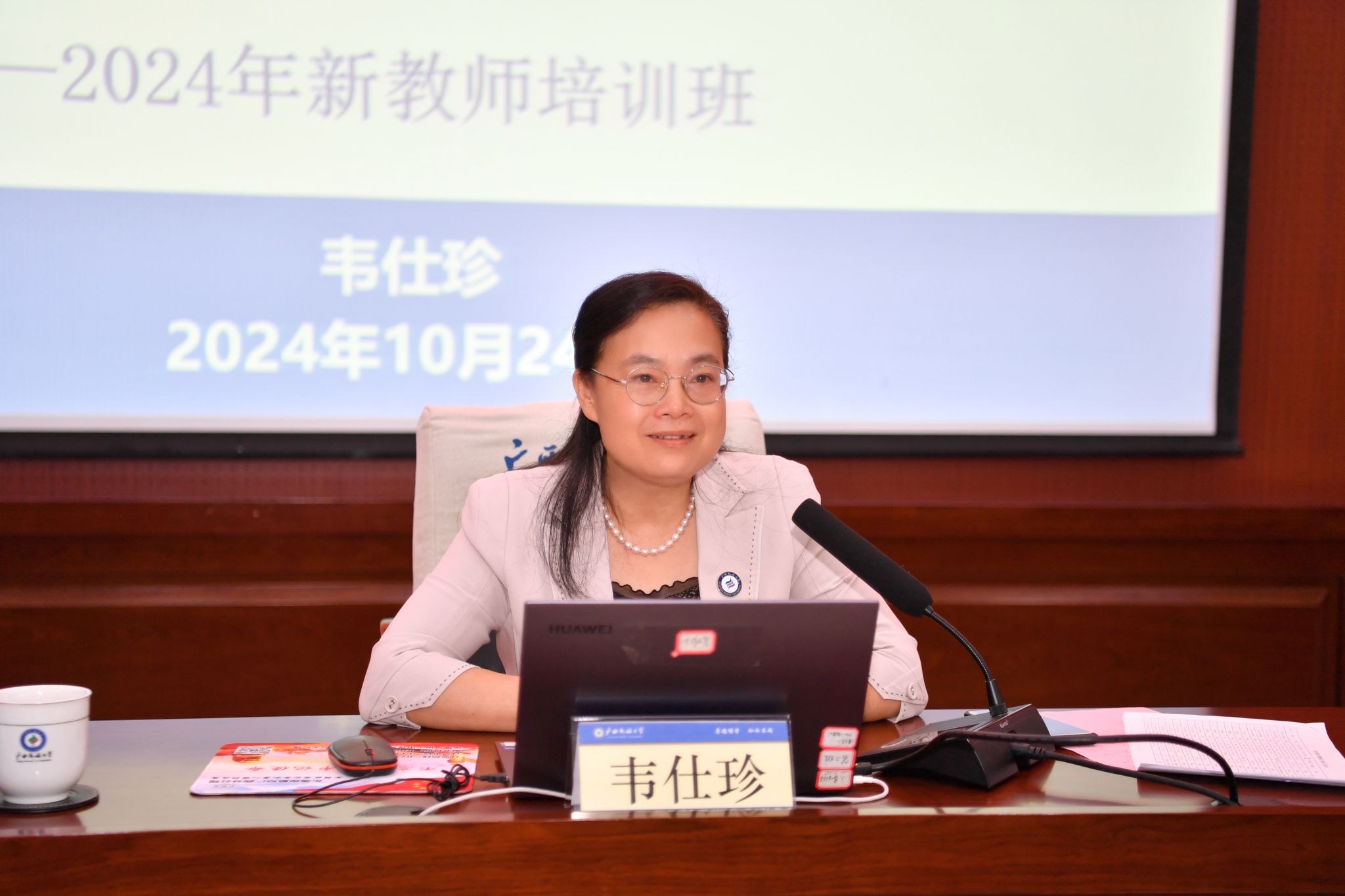 【大学生通讯社报道】10月24日,澳门网投官方网站2024年新入职教职工培训班在相思湖校区科技楼报告厅开班。学校党委副书记、校长韦仕珍出席开班仪式并作首场辅导讲座。