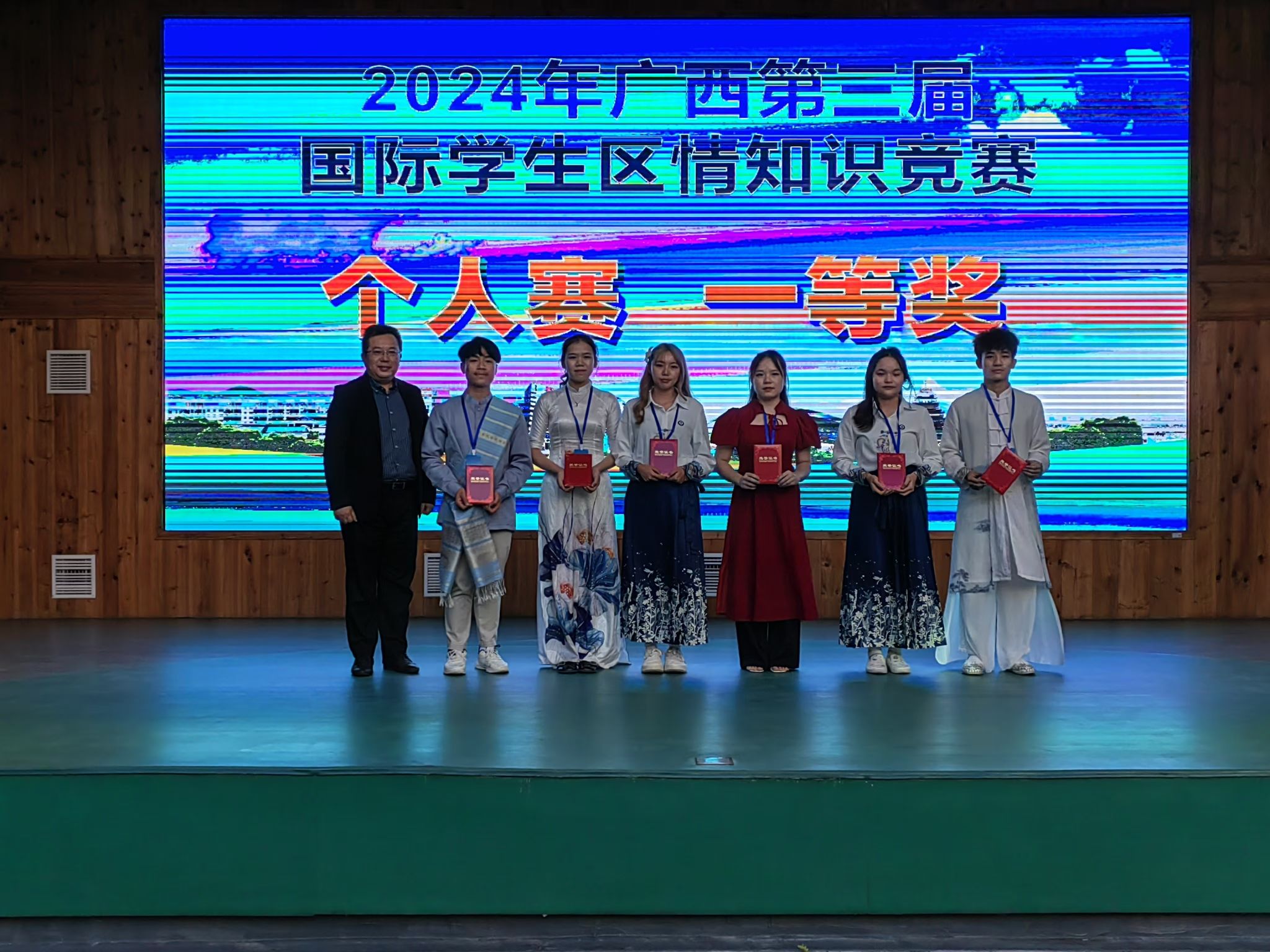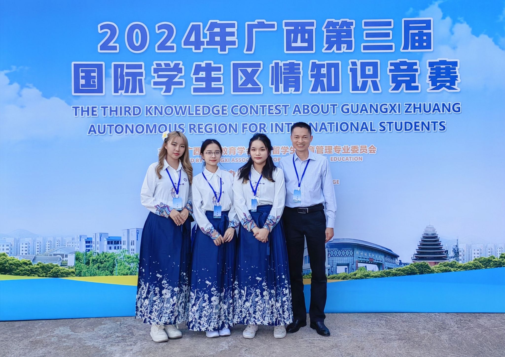 10月24—25日,由广西高等教育学会外国留学生教育管理专业委员会主办的2024年广西第三届国际学生区情知识竞赛在柳州举行。澳门网投官方网站留学生潘陈立春、吴丽玲荣获个人赛一等奖,阮玉英荣获个人赛二等奖。团体赛中荣获三等奖。