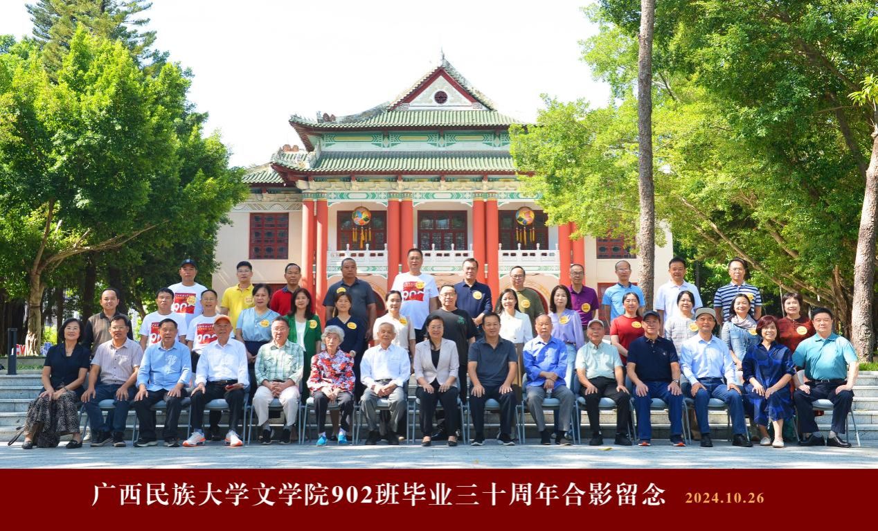 10月26日,我校原中文系汉语言文学专业1990级2班校友举行毕业30周年纪念活动。澳门网投官方网站校长韦仕珍出席活动,文学院历任领导林仕良、朱文雄、李继兵、黄秉生、陆卓宁等老师与校友参加活动。