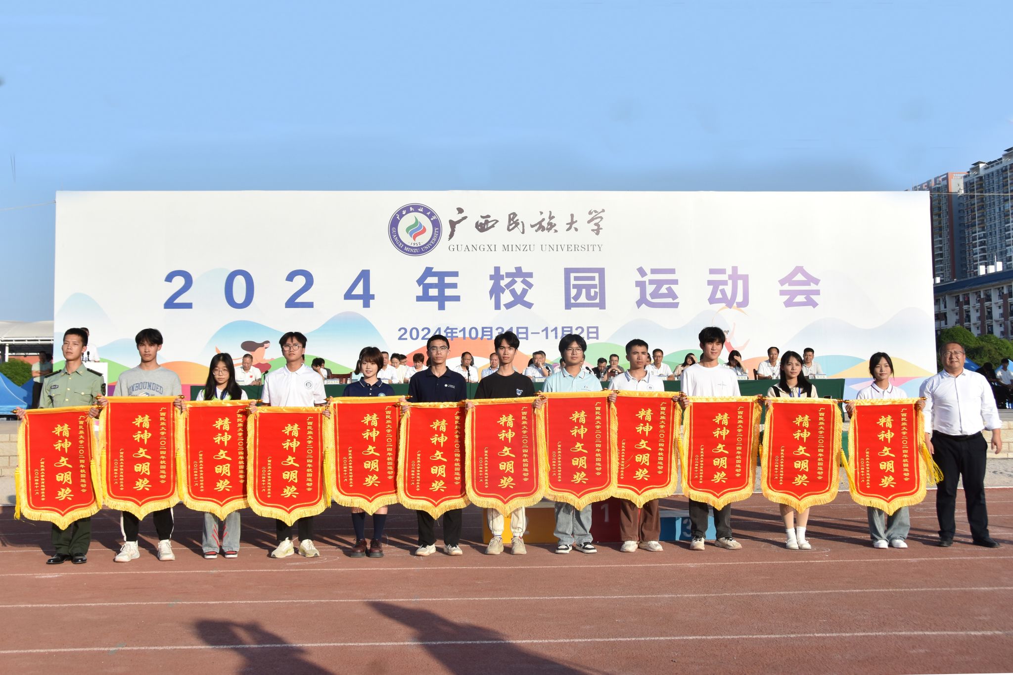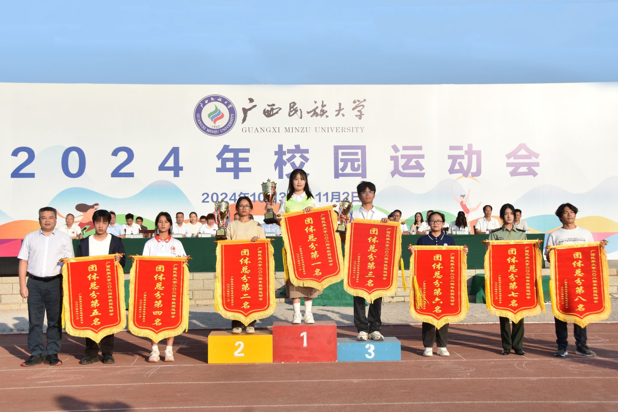 吕俊彪表示,本次校运会中运动员们以饱满的热情、昂扬的斗志、拼搏的精神,展现了民大人不畏艰难、勇于挑战、追求卓越的风采。校运会不仅是对体育教育的重视,也促进了学生德智体美劳的全面发展,体现了学校立德树人的教育理念。希望广大师生牢固树立终身体育意识,与运动同步、与健康同行,发扬不畏艰难、勇于挑战的精神,为加快建设特色鲜明的高水平现代化综合大学踔厉奋发、勇于作为,为全面推进教育强国建设做出新的更大贡献。