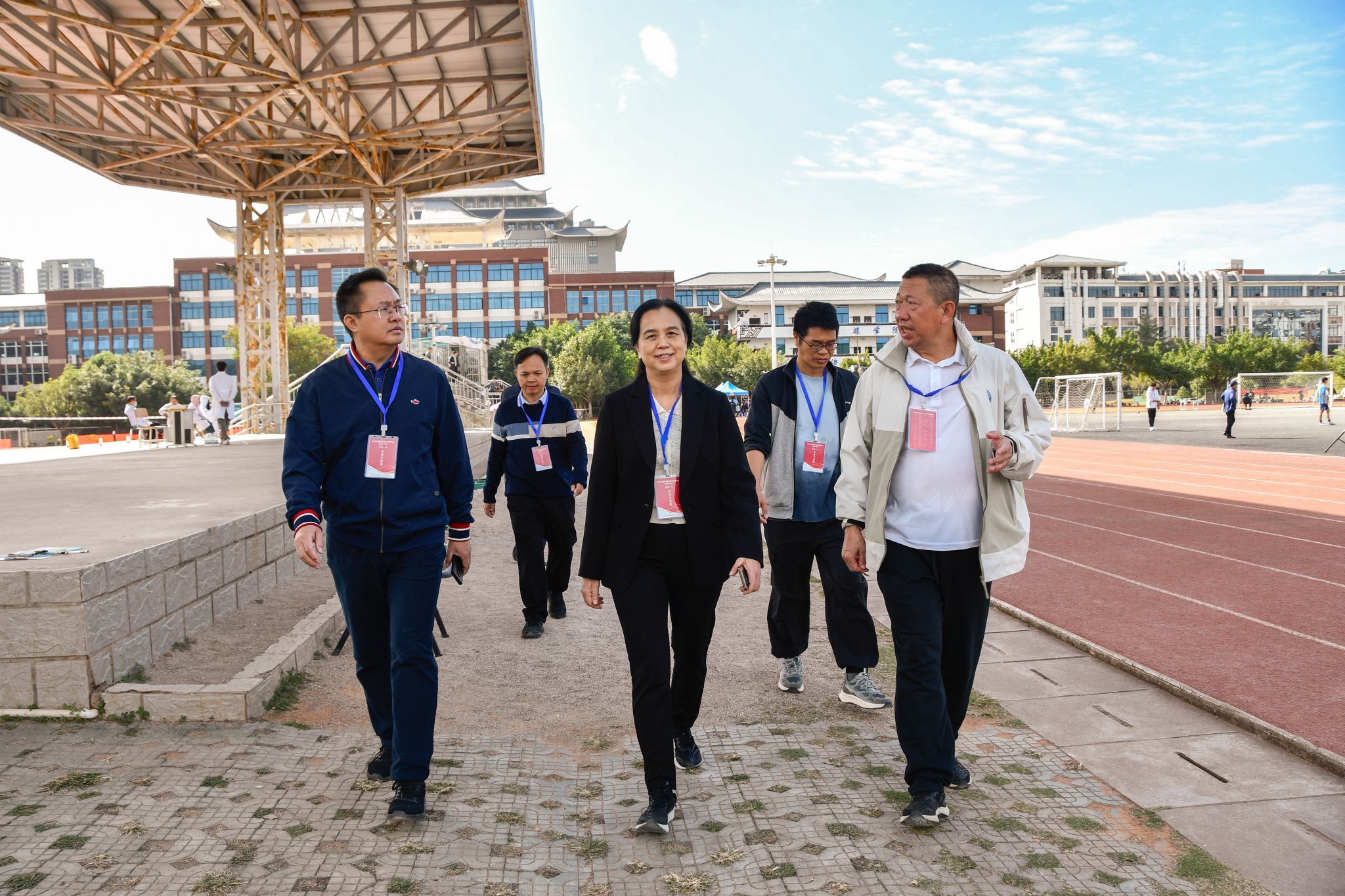 11月27日,学校党委常委、副校长吕俊彪陪同自治区招生考试院党委书记、院长刘冰一行在校检查2025年广西体育统考工作情况,要求考评员和考务人员严格执行考试标准,优化考试流程,强化责任监督,圆满完成各项工作任务。(初审/余高 复审/潘之铭 终审/王文娟)