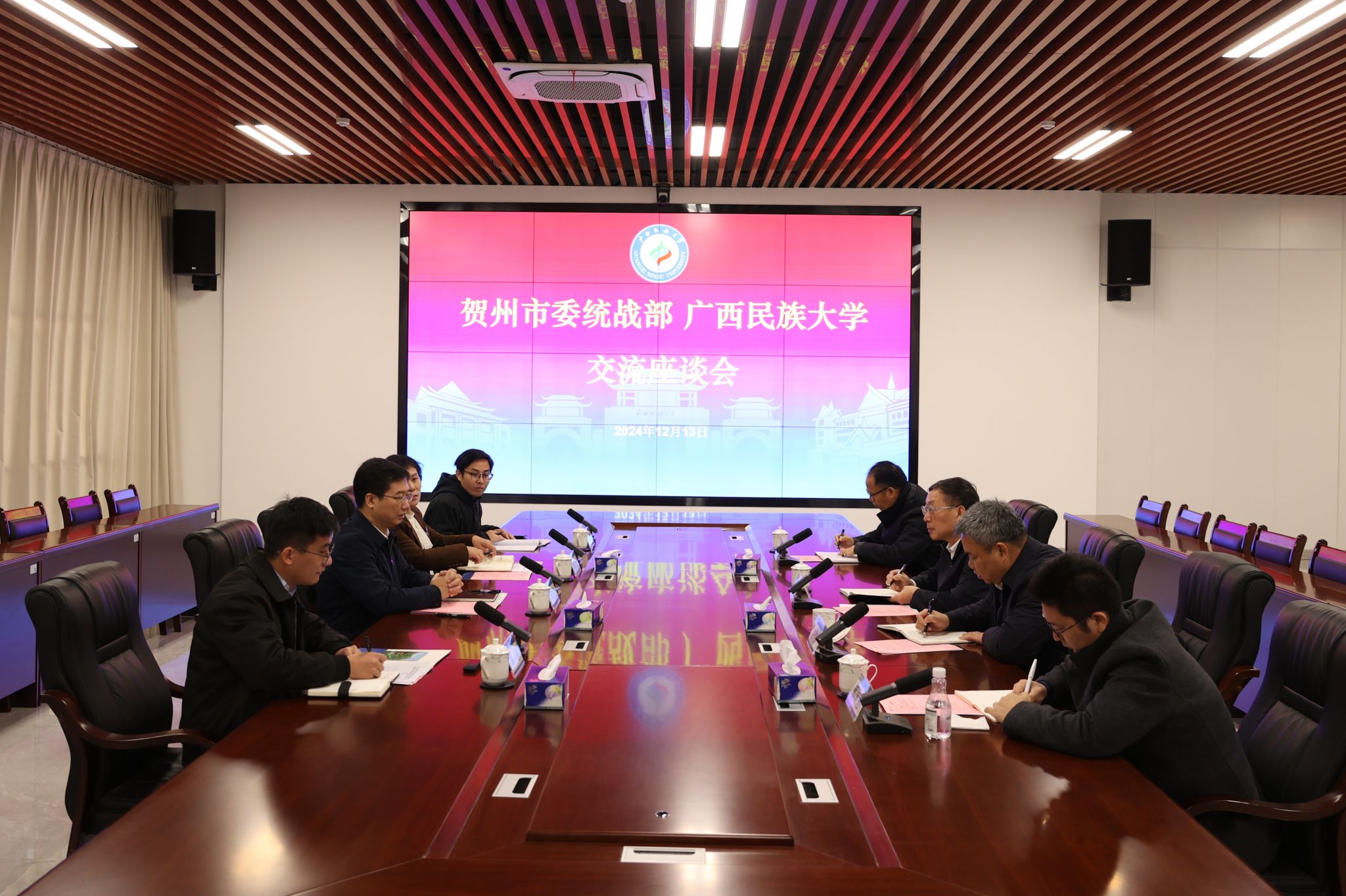 【大学生通讯社报道】12月13日上午,澳门网投官方网站党委书记卞成林会见来校调研的贺州市委常委、统战部部长、副市长蒋晓军一行。双方就推进铸牢中华民族共同体意识工作进行座谈交流。学校党委副书记陈铭彬主持会议。