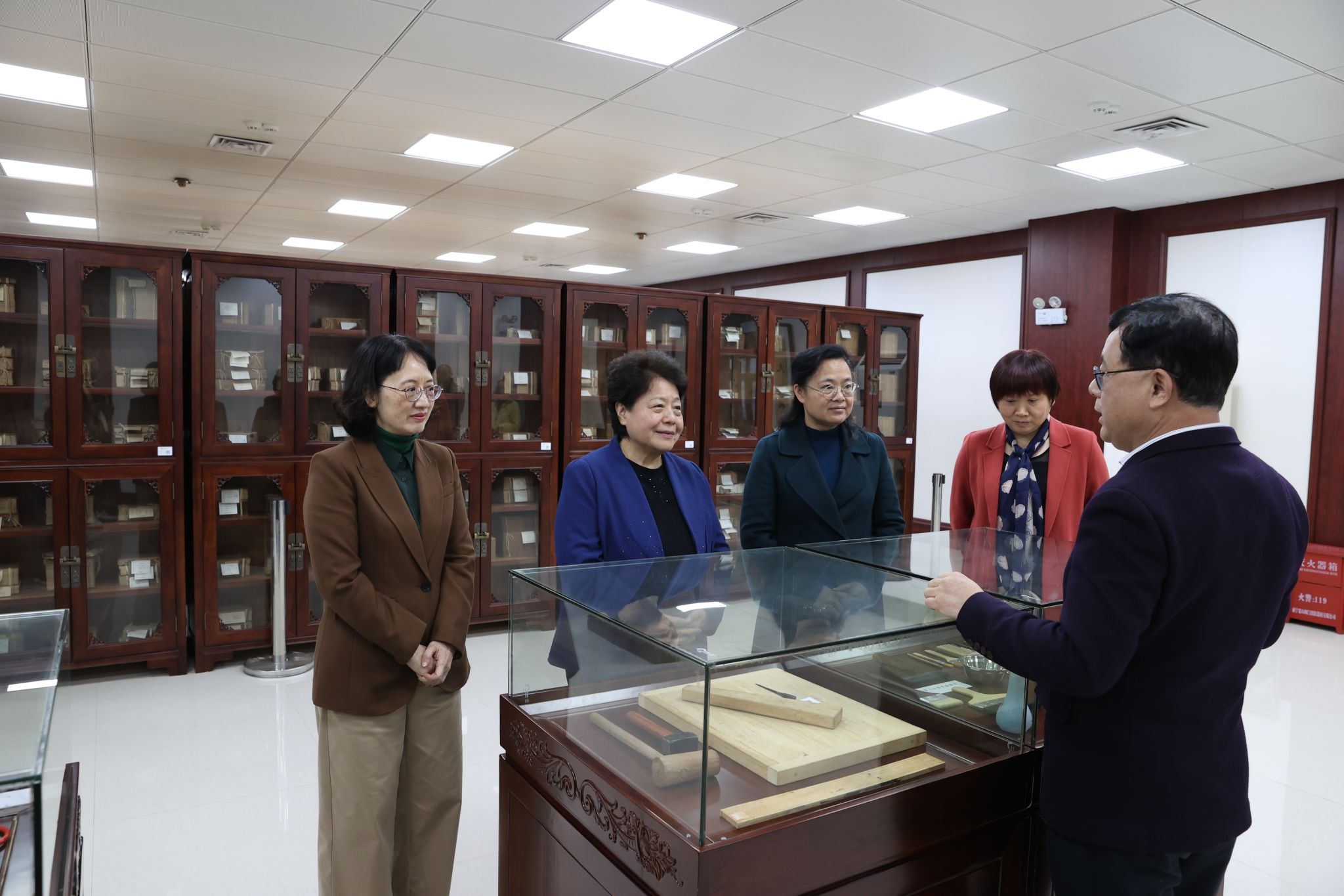 十三届全国人大民族委员会副主任委员、原中文系1977级校友李康参观图书馆古籍库