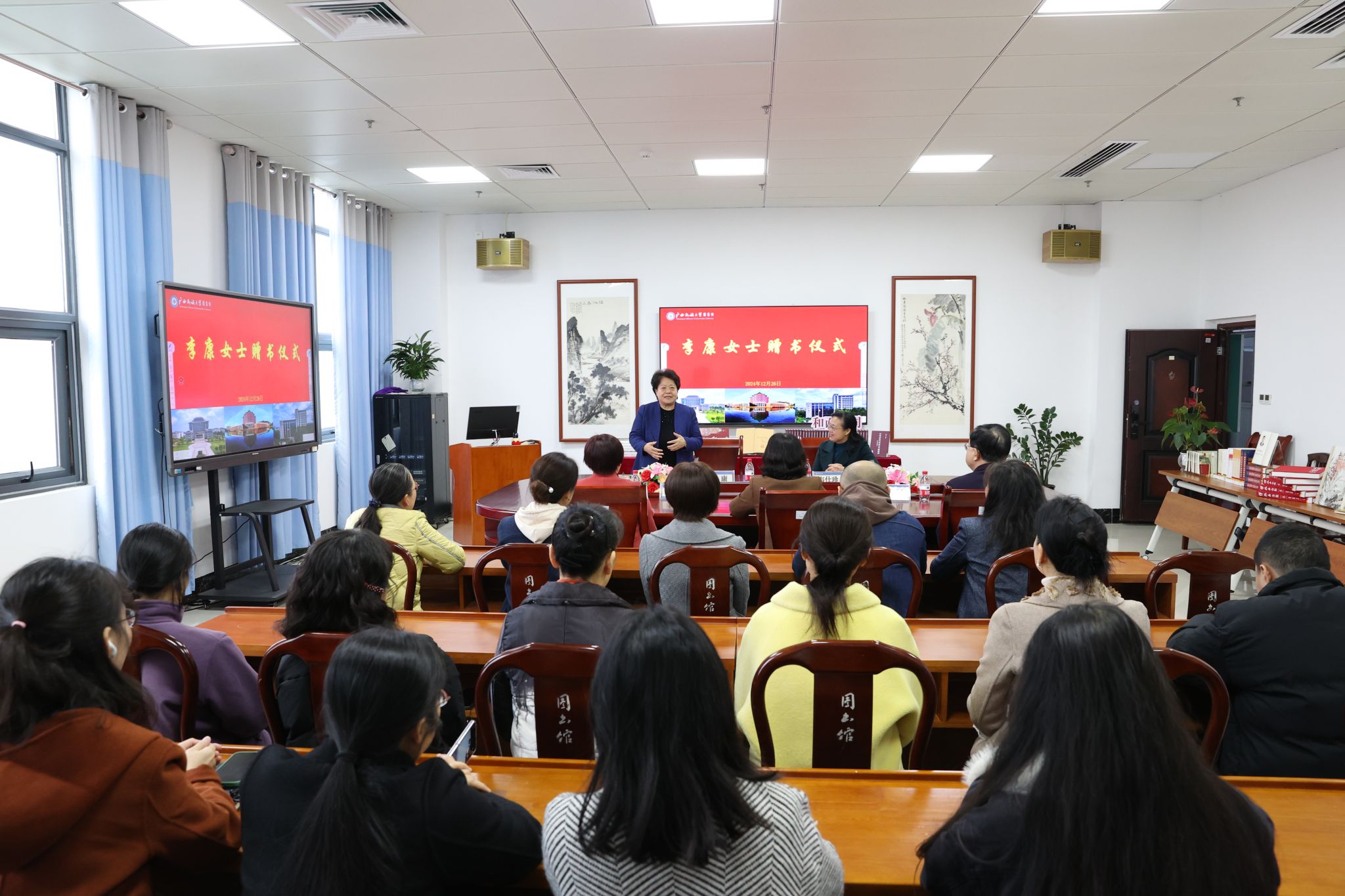 【大学生通讯社报道】12月26日下午,十三届全国人大民族委员会副主任委员、原中文系1977级校友李康向澳门网投官方网站捐赠图书仪式在相思湖校区图书馆举行。校长韦仕珍,副校长黄晓娟出席捐赠仪式。图书馆负责人及师生代表参加。