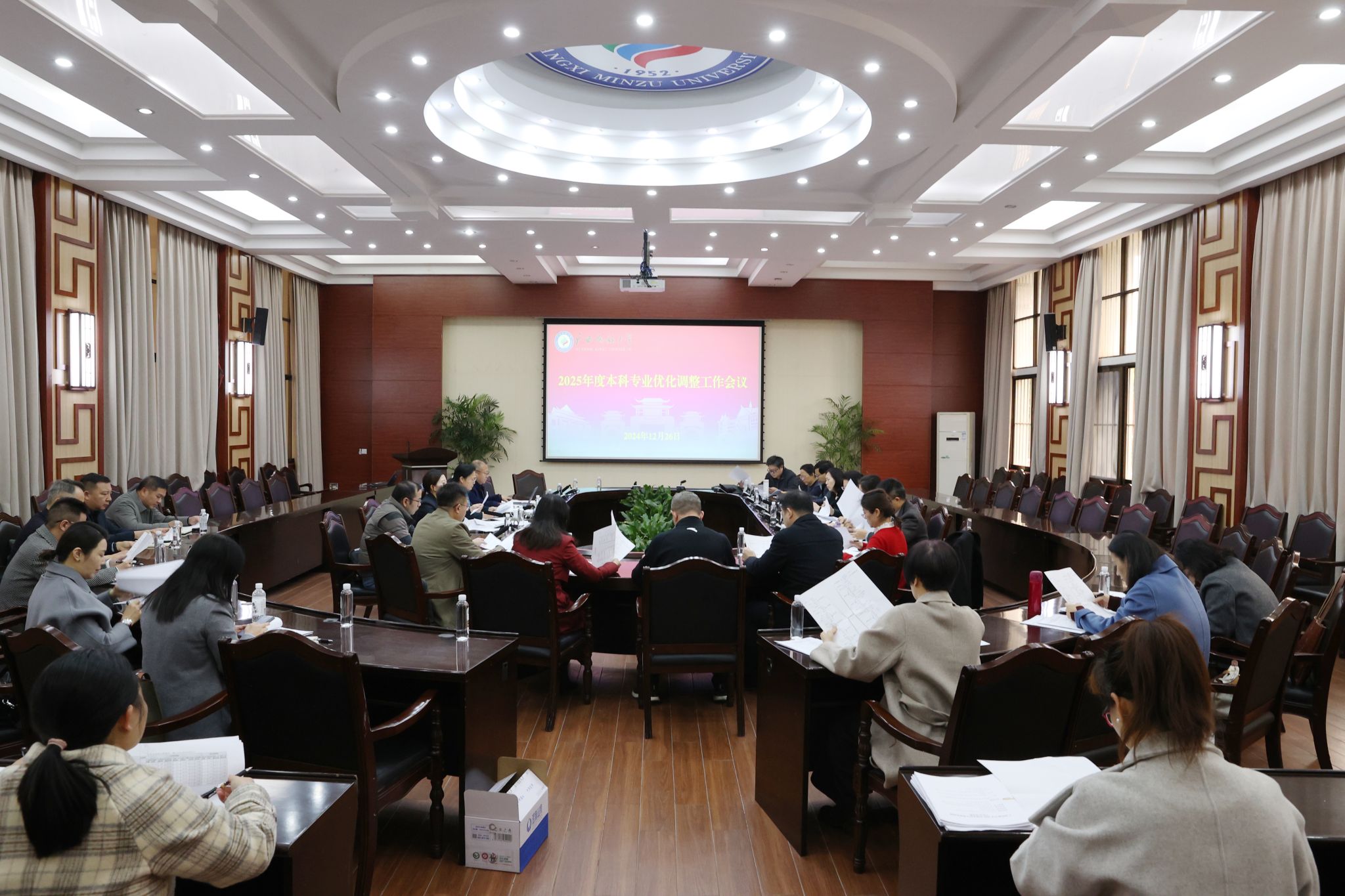 【大学生通讯社报道】12月26日下午,澳门网投官方网站召开2025年度本科专业优化调整工作会议。学校党委副书记、校长韦仕珍出席会议并讲话。学校党委常委、副校长姜明国主持会议。