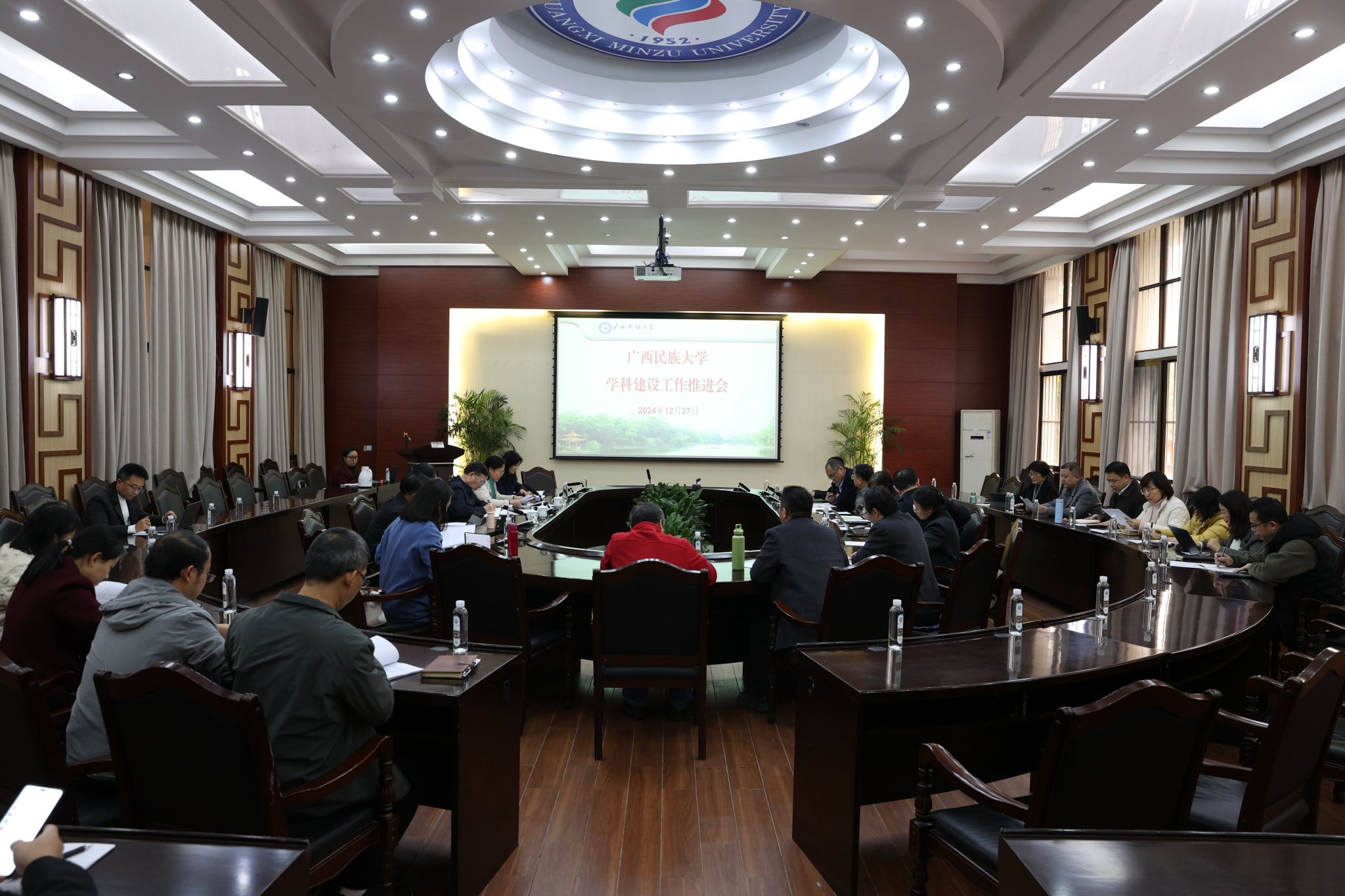 发展规划处汇报学校广西一流学科建设和拟申请新增博士学位授权审核工作情况,广西一流学科、拟申请新增博士学位授权点负责人汇报学科建设推进、专项资金使用情况等。(初审:莫晓华 复审:潘之铭 终审:孙寿媚)