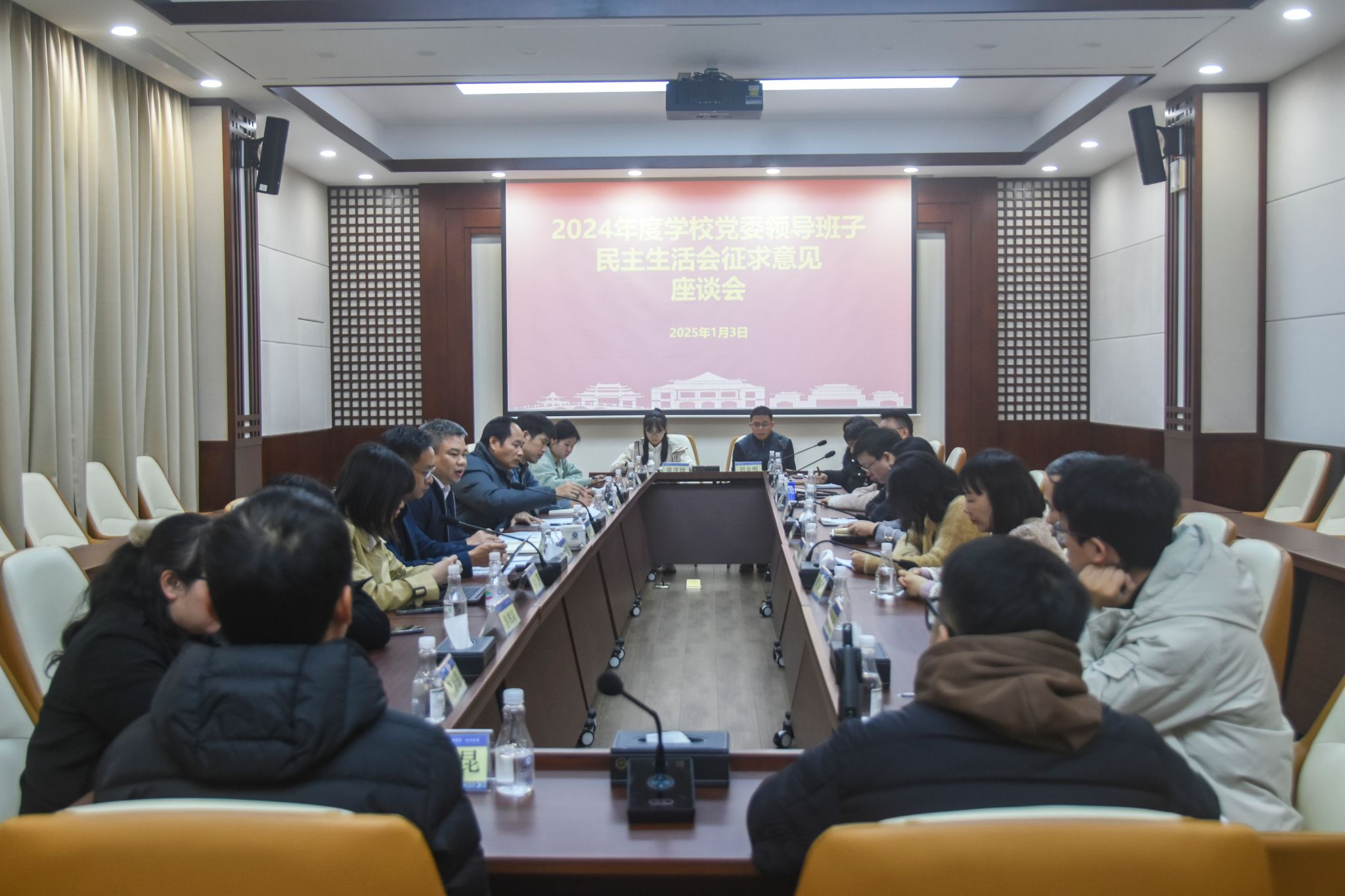 1月3日,陈铭彬在2024年度学校党委领导班子民主生活会征求意见座谈会上指出,学校党委将实事求是梳理与会同志的意见建议,原汁原味反馈给班子成员,将其体现到民主生活会的问题查摆、原因剖析和整改措施中,把大家对党委领导班子、学校发展的期望变成切实举措。