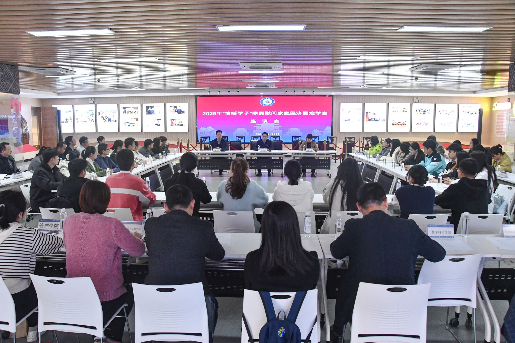 1月2日,学校党委副书记邓国彬在2025年“情暖学子”寒假慰问家庭经济困难学生座谈会上强调,学校高度重视学生资助工作,持续完善资助政策,不断加大资助力度,帮助家庭经济困难学生减轻负担。邓国彬勉励同学们志存高远、锐意进取、励志成才,成为思想进步、学业优秀、品格高尚的榜样。