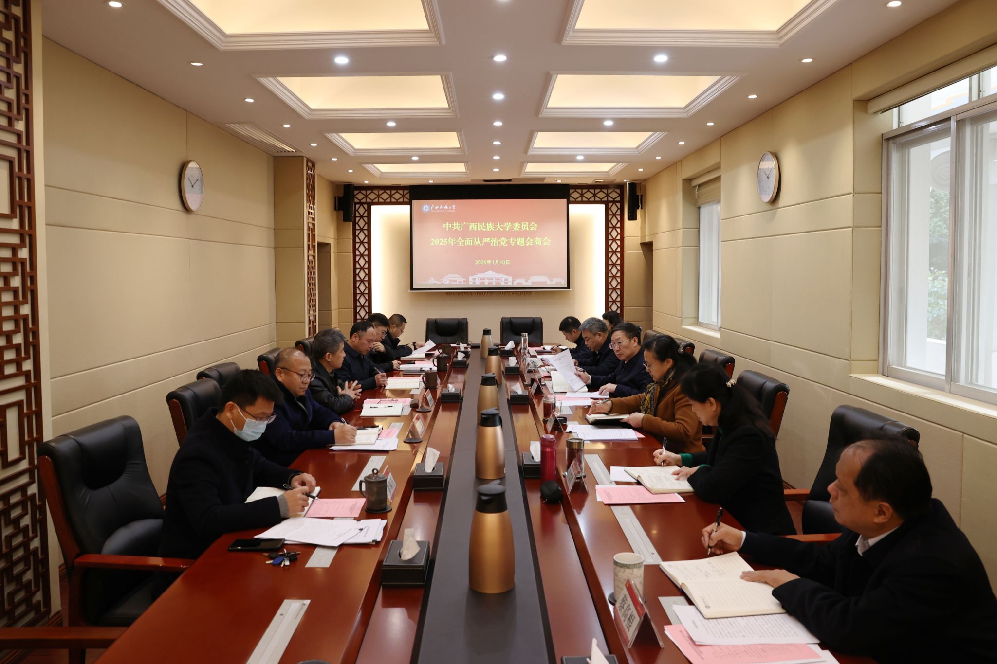 1月10日上午,澳门网投官方网站党委与驻校纪检监察组联合召开澳门网投官方网站2025年全面从严治党专题会商会,贯彻落实《党委(党组)落实全面从严治党主体责任规定》《纪检监察机关派驻机构工作规则》等有关规定,总结、分析学校2024年全面从严治党、党风廉政建设和反腐败工作情况,研究部署学校2025年全面从严治党、党风廉政建设和反腐败重点工作。学校党委书记卞成林主持会议并讲话。党委领导班子成员参加会议。