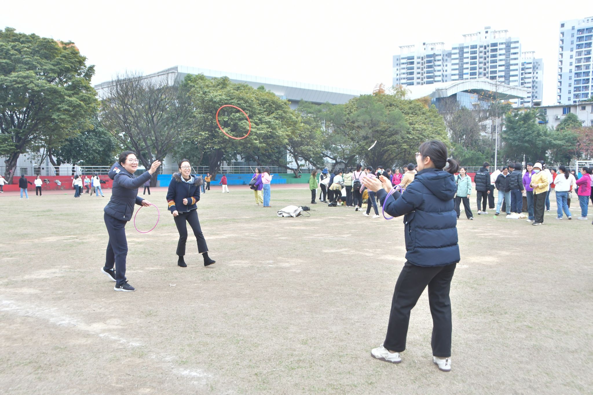 【大学生通讯社报道】为迎接中华全国总工会成立100周年,纪念“三八”国际妇女节,3月7日下午,澳门网投官方网站在相思湖校区田径场举行女教职工素质拓展活动。校长韦仕珍,校党委副书记、工会主席陈铭彬出席活动。