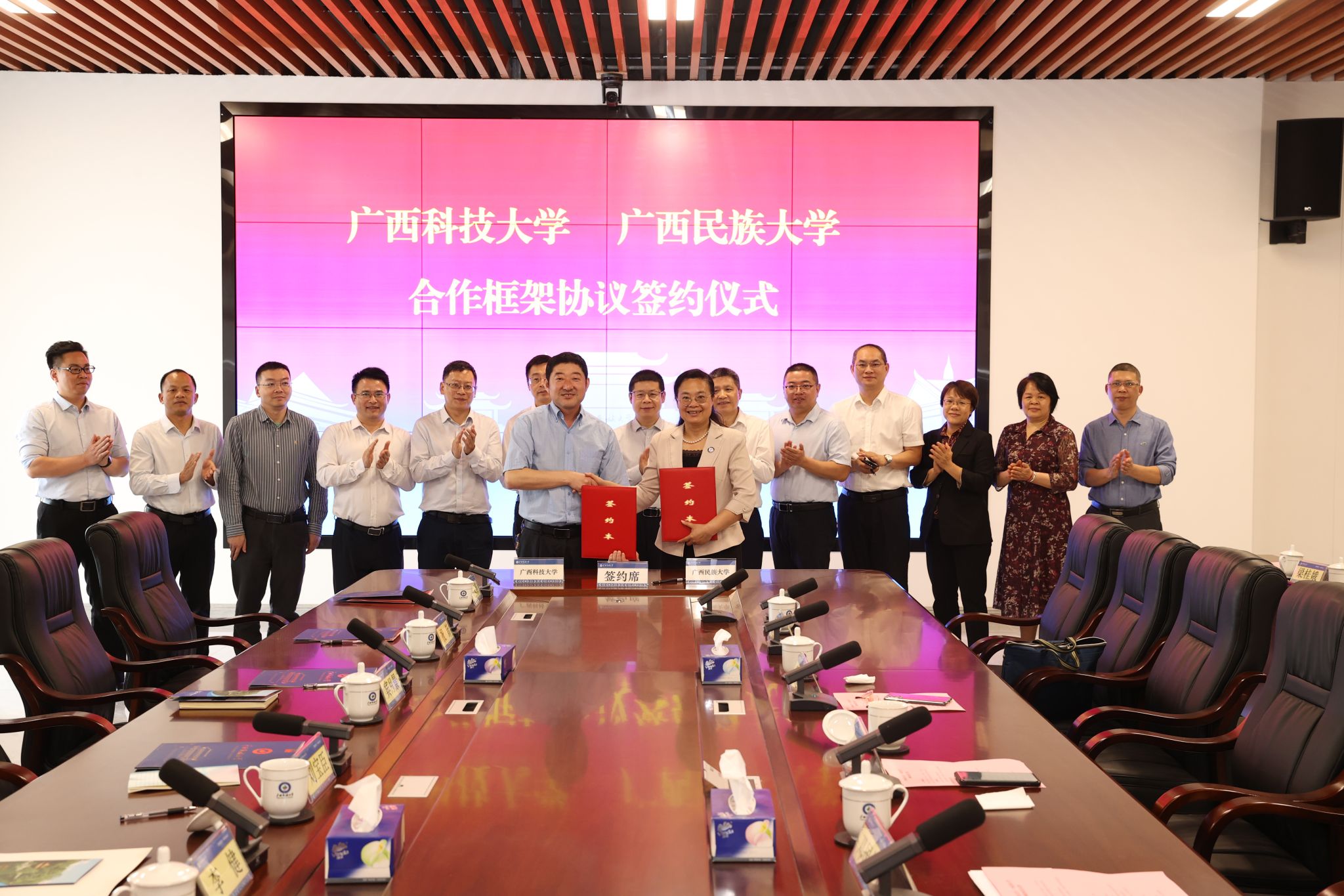 【大学生通讯社报道】4月14日下午,广西科技大学校长刘宝臣带队到澳门网投官方网站调研交流,澳门网投官方网站校长韦仕珍会见刘宝臣一行。双方在广西中华民族共同体意识研究院会议室举行座谈会并签订合作协议。澳门网投官方网站党委副书记邓国彬,副校长吕俊彪出席座谈会。
