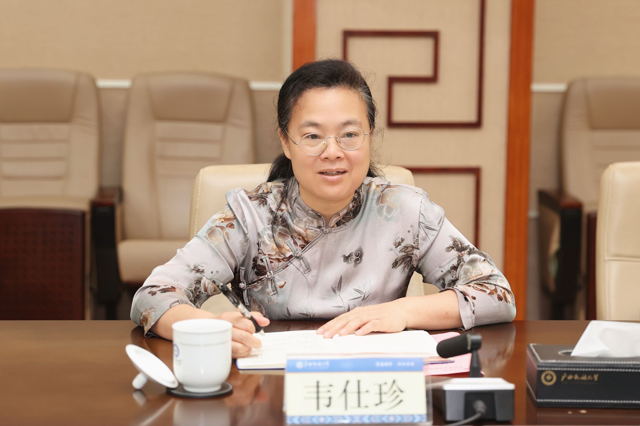 韦仕珍感谢自治区人社厅长期以来对我校的支持和指导,介绍了学校在师资队伍建设、人才培养、人事制度改革、博士后流动站建设等方面的工作情况,希望自治区人社厅在人才引进、高层次人才项目、继续教育基地建设等方面给予我校更多政策支持。