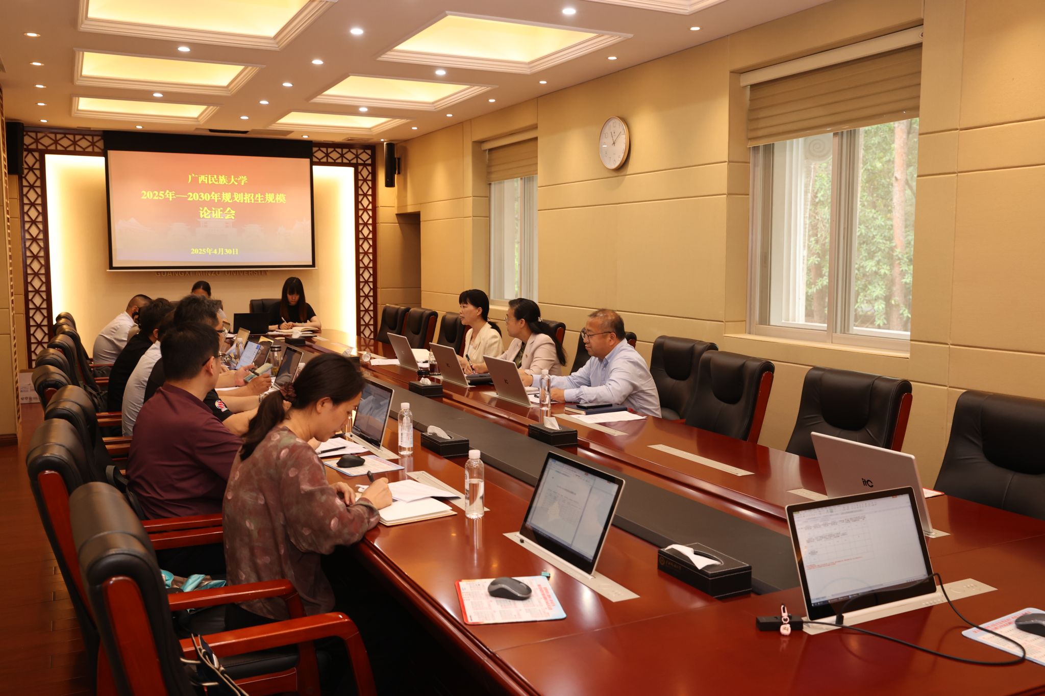 4月30日上午,澳门网投官方网站召开2025—2030年规划招生规模论证会,校长韦仕珍,副校长姜明国出席会议,发展规划处、招生就业处、人事处、研究生院、国际合作与交流处、后勤基建处、继续教育学院等负责人与会。