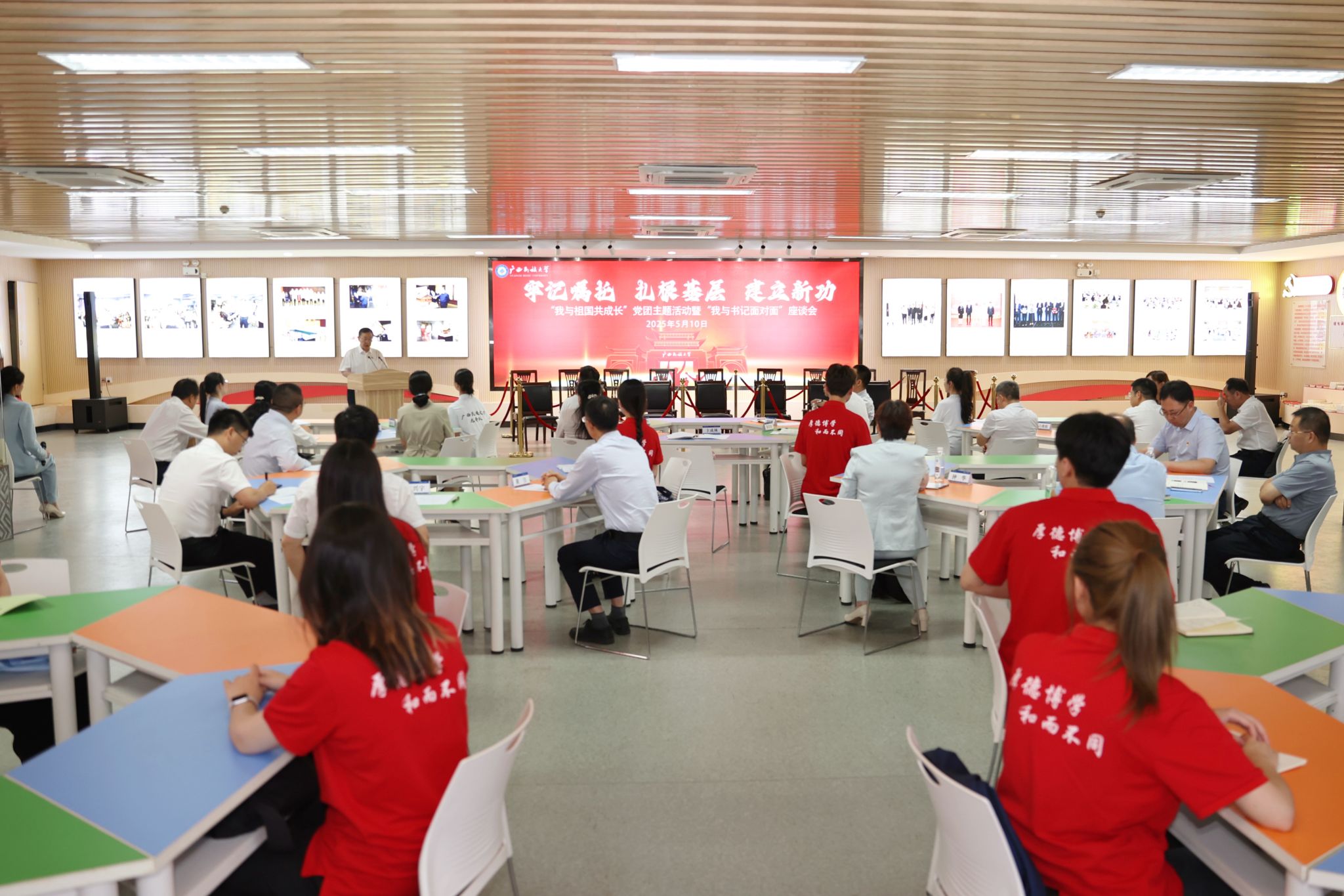 【大学生通讯社报道】5月10日下午,澳门网投官方网站举行“我与祖国共成长”党团主题活动暨“我与书记面对面”座谈会。校党委书记卞成林,党委副书记、校长韦仕珍出席活动,全体在家校领导及有关职能部门负责人、师生代表、校友代表参加活动。