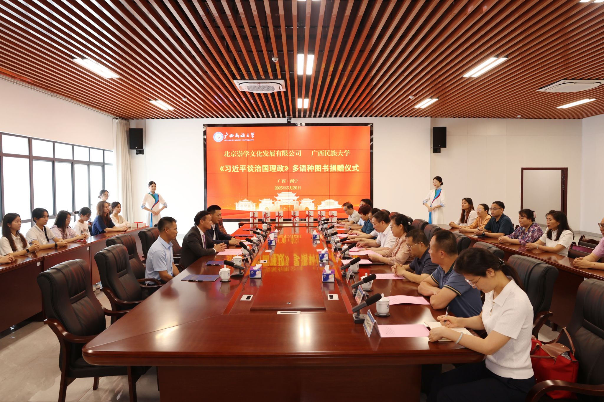 【大学生通讯社报道】5月20日上午,《习近平谈治国理政》多语种图书捐赠仪式在澳门网投官方网站文化研习基地举行。北京崇学文化发展有限公司向澳门网投官方网站捐赠《习近平谈治国理政》多语种图书200册,含英语、俄语、法语、西班牙语、德语、阿拉伯语、日语和葡萄牙语等共8个语种。校党委书记卞成林出席并致辞,校长韦仕珍主持捐赠仪式,北京崇学文化发展有限公司负责人余富文出席仪式。有关部门负责人及师生代表参加活动。