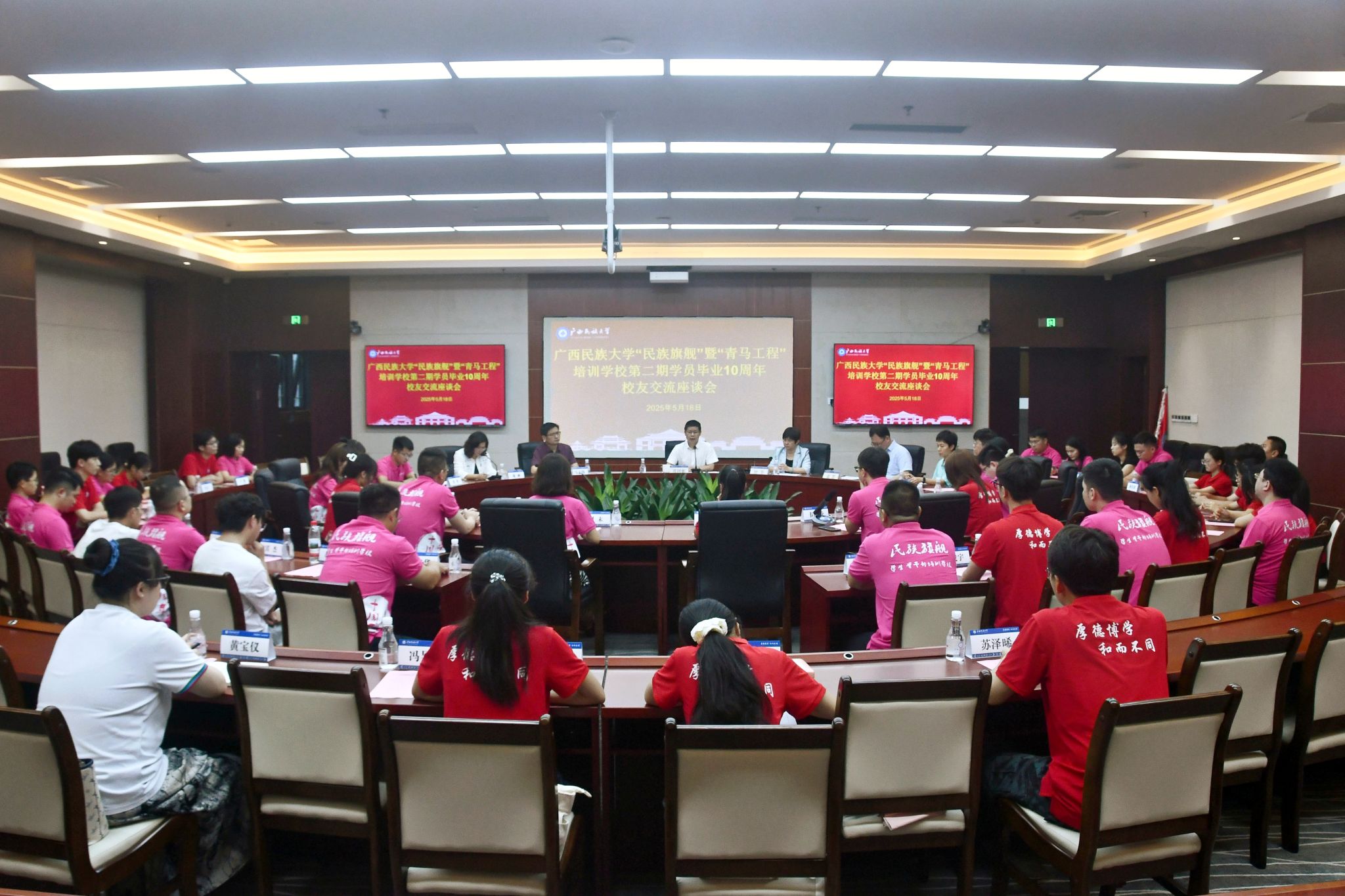 5月18日,校党委副书记邓国彬在“民族旗舰”暨“青马工程”培训学校第二期学员毕业十周年校友交流座谈会上表示,学员们在毕业后传承和发扬“扎根”精神和“石榴籽”精神,用“下得去、留得住、干得好、能发展”的实际行动诠释了青春担当。(初审:韩燕燕 复审:潘之铭 终审:孙寿媚)