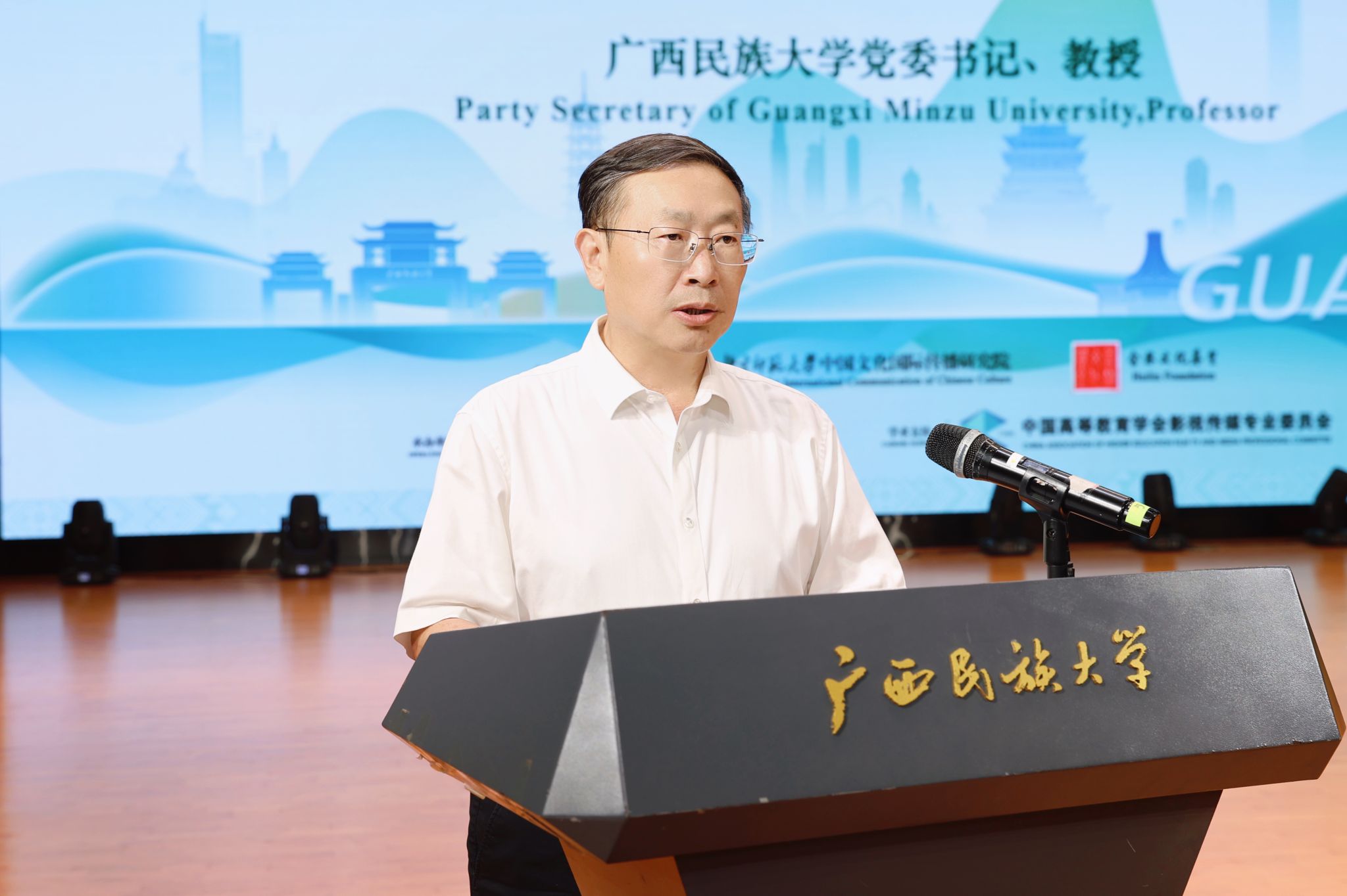 【大学生通讯社报道】5月21日下午,2025“看中国•外国青年影像计划•广西行”展映仪式在澳门网投官方网站思源湖校区举行。澳门网投官方网站党委书记卞成林,中国文艺评论家协会副主席、北京师范大学京师特聘教授向云驹出席活动并致辞,国际青年导演、中方志愿者、学校有关部门负责人、师生代表参加展映仪式。