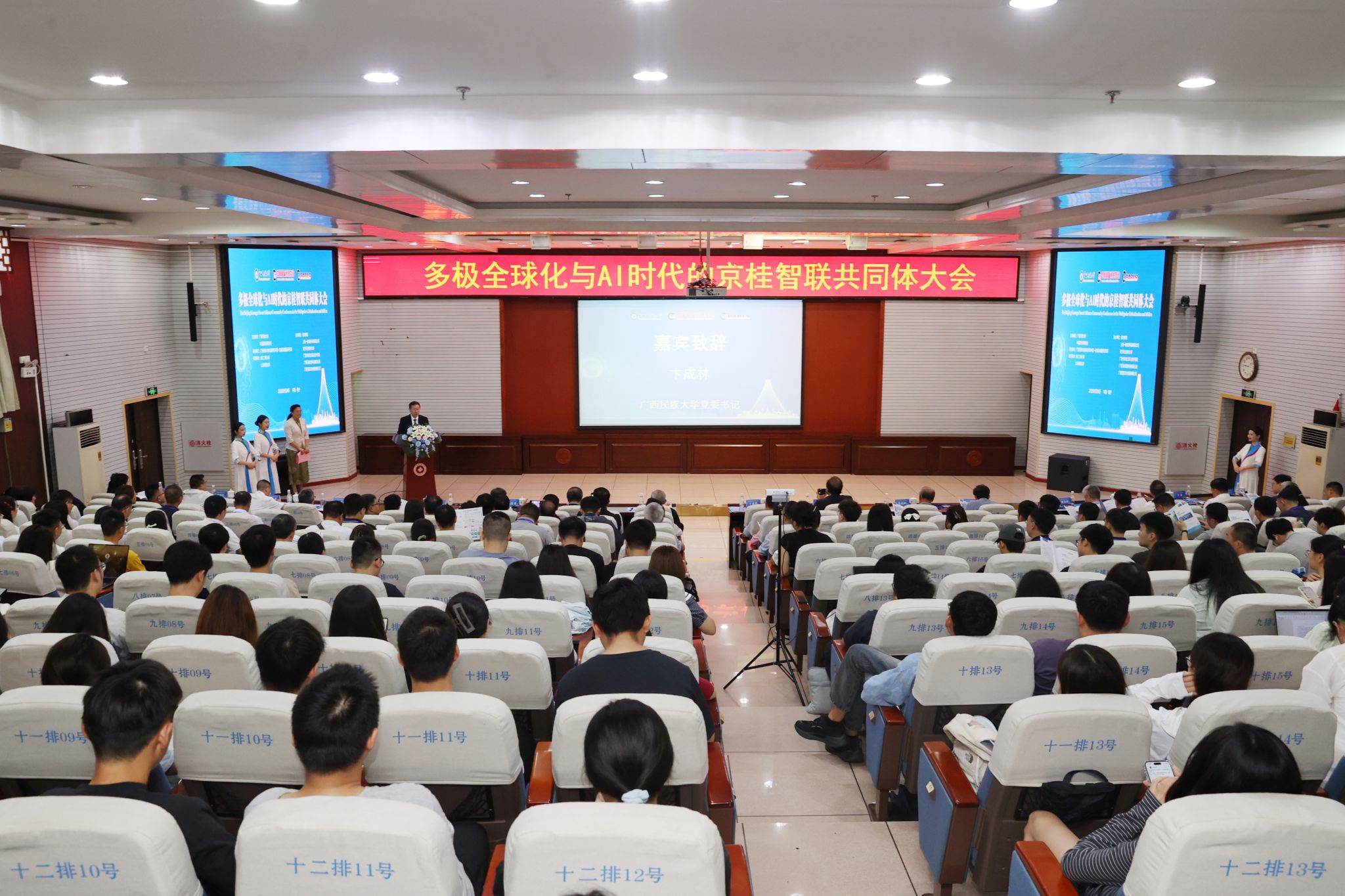 【大学生通讯社报道】5月24日,多极全球化与AI时代的京桂智联共同体大会在澳门网投官方网站相思湖校区举行。校党委书记卞成林,校长韦仕珍,自治区教育厅科研管理处处长、二级巡视员黄青云,对外经济贸易大学校长赵忠秀,中国国际贸易学会会长金旭,上海国际问题研究院学术咨询委员会主任杨洁勉,北京大学区域国别研究院副院长翟崑,润建股份有限公司执行总裁李群伟,老挝沙湾拿吉大学副校长西提赛教授出席开幕式,共同祝贺中国国际贸易学会区域国别研究专业委员会和澳门网投官方网站老挝研究院的成立。韦仕珍主持开幕式。