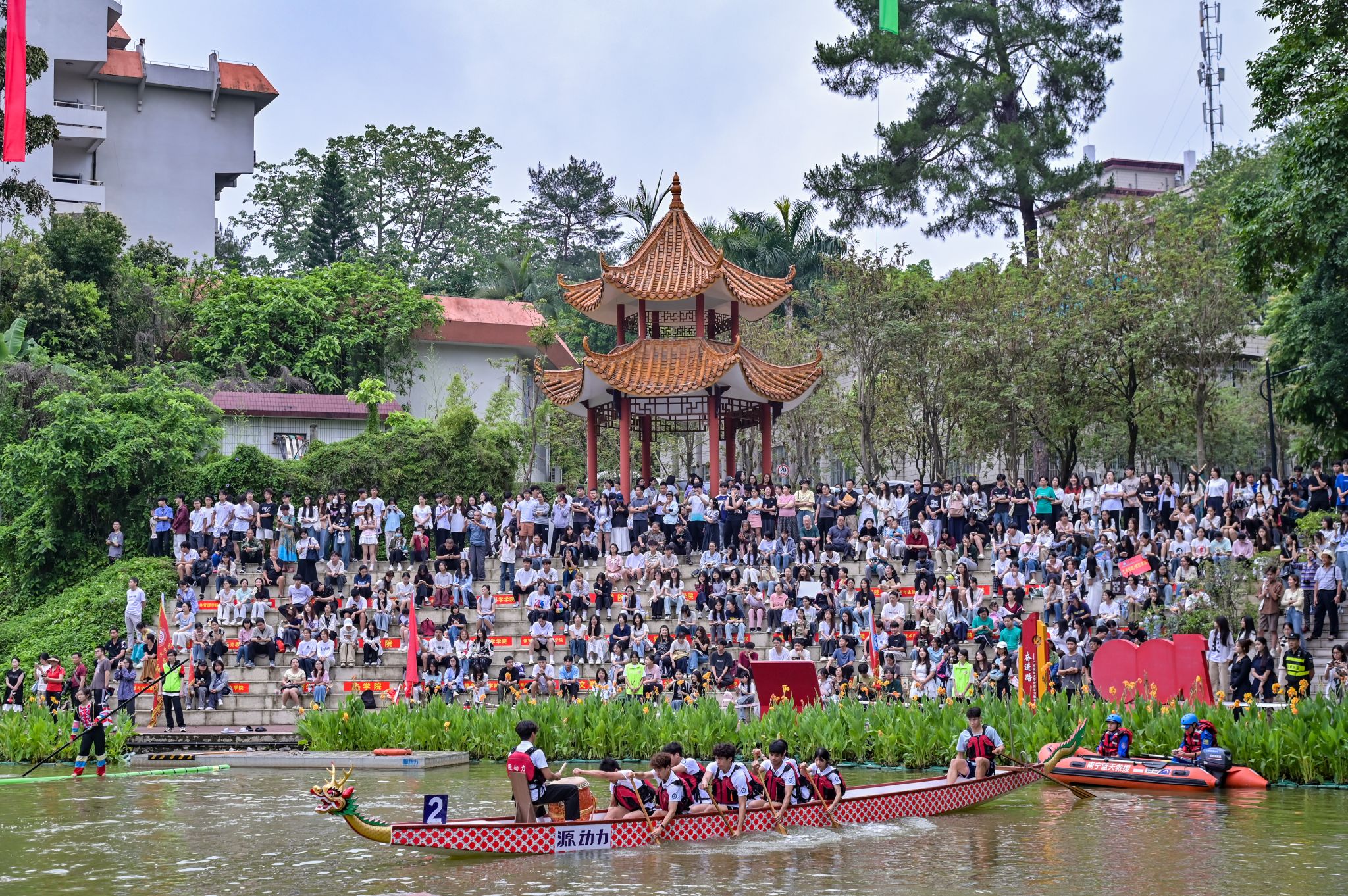 【大学生通讯社报道】粽叶飘香情意浓,龙舸争飞劈浪高。5月30日上午,在端午佳节即将来临之际,澳门网投官方网站2025年“红石榴”杯校园龙舟赛在相思湖畔火热举行。校党委书记卞成林出席活动并宣布开幕,校长韦仕珍,校领导陈铭彬、韦雪芳、邓国彬、蔡高根、吕俊彪、何立荣等出席活动,有关部门负责人、师生代表参加活动。