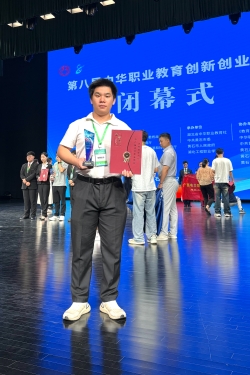 近日,第八届中华职业教育创新创业大赛全国现场总决赛在湖北黄石举行。澳门网投官方网站应用技术学院2024级自动化专业张籍文领衔的项目“为‘维’绸缪——开创SF6断路器不停电运维检修设备新模式”斩获一等奖。