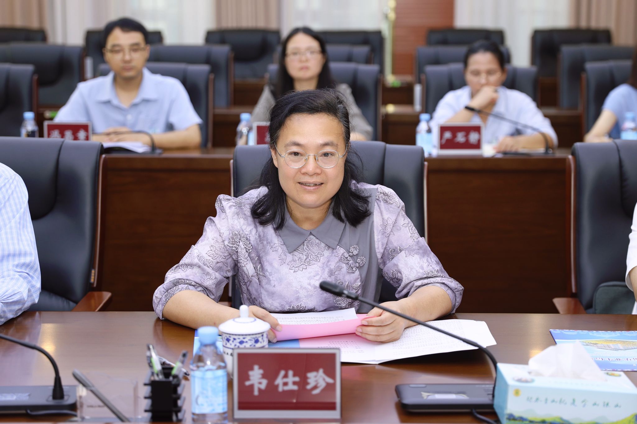 韦仕珍介绍学校在人才培养、科学研究、学科建设、国际交流与合作等方面的建设成果与发展规划。她表示,学校将依托人工智能、生物技术、制药工程等学科与人才优势,为广西林业事业的高质量发展提供坚实的智力支撑。期待在自治区林业局的政策支持和项目资源助力下,学校生态环境等有关学科和研究领域实现更为长足的发展。
