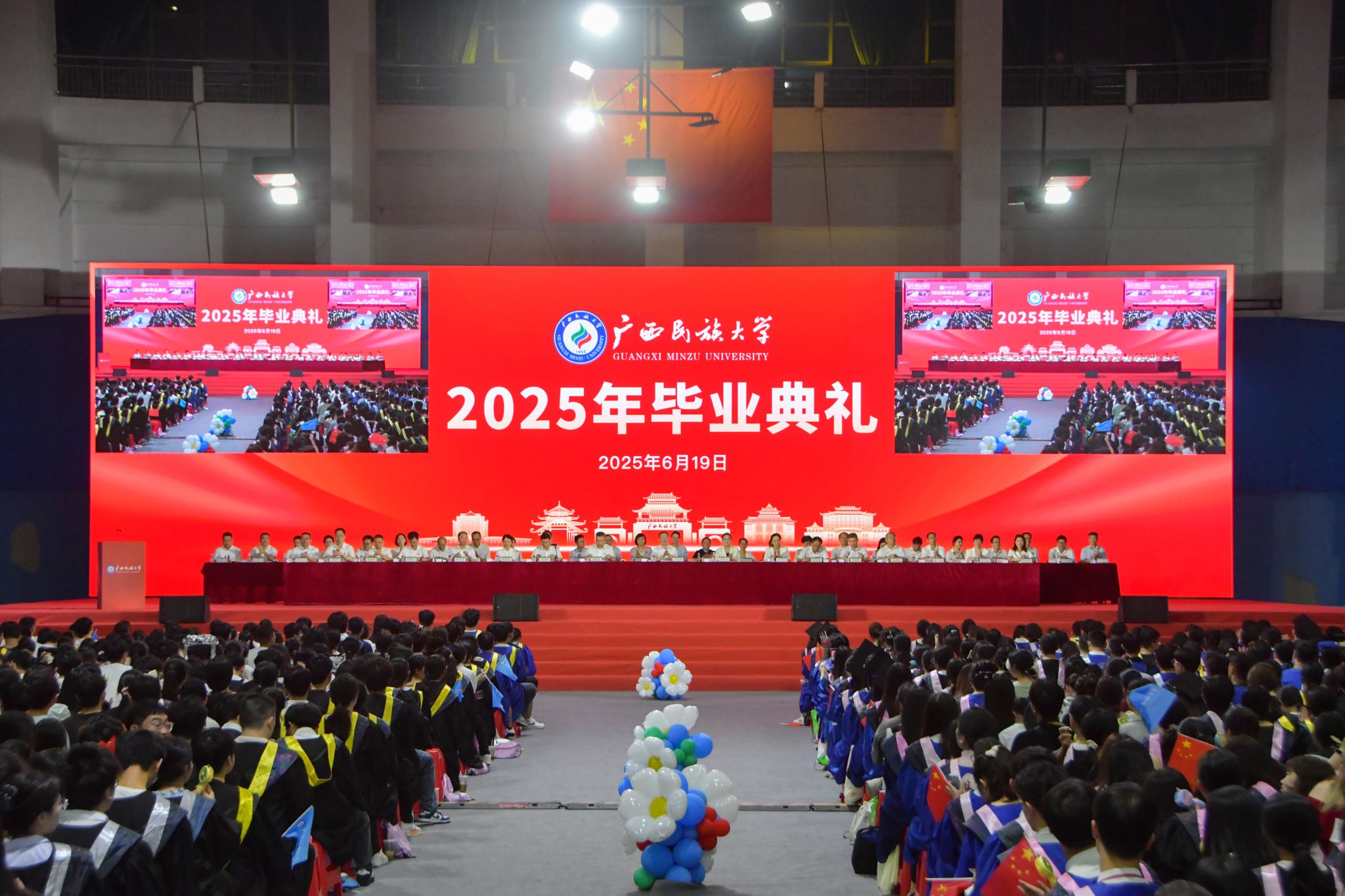 毕业典礼在雄壮的国歌声中正式开始。全体师生高唱国歌,铿锵有力的歌声唱出了家国情怀与青春理想。