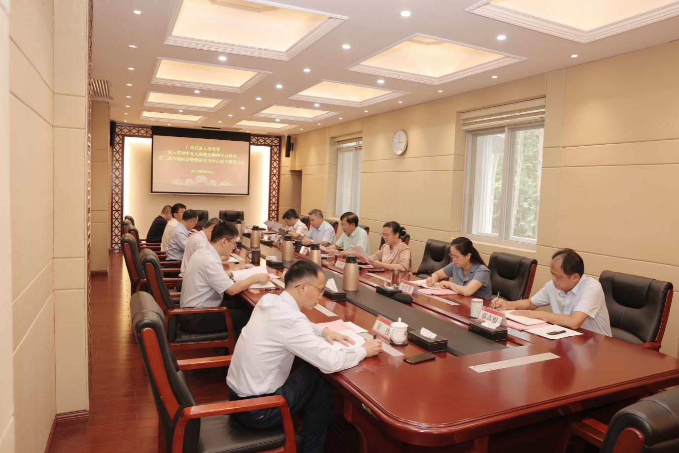 会议通报了两起严重违反中央八项规定精神典型问题案例。会议强调,要以案为鉴,领导干部要深刻认识违规吃喝问题、形式主义、官僚主义的严重危害,深刻认识中央八项规定是长期有效的铁规矩、硬杠杠,要知敬畏、存戒惧、守底线,严格落实中央八项规定精神。
