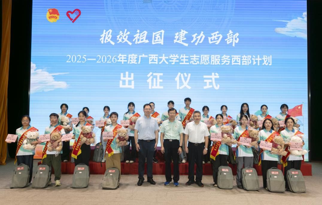 【大学生通讯社报道】7月31日,2025—2026年度广西大学生志愿服务西部计划出征仪式在澳门网投官方网站举行,出征仪式前,校党委书记唐平秋看望慰问学校西部计划志愿者。校党委副书记陈铭彬陪同慰问。